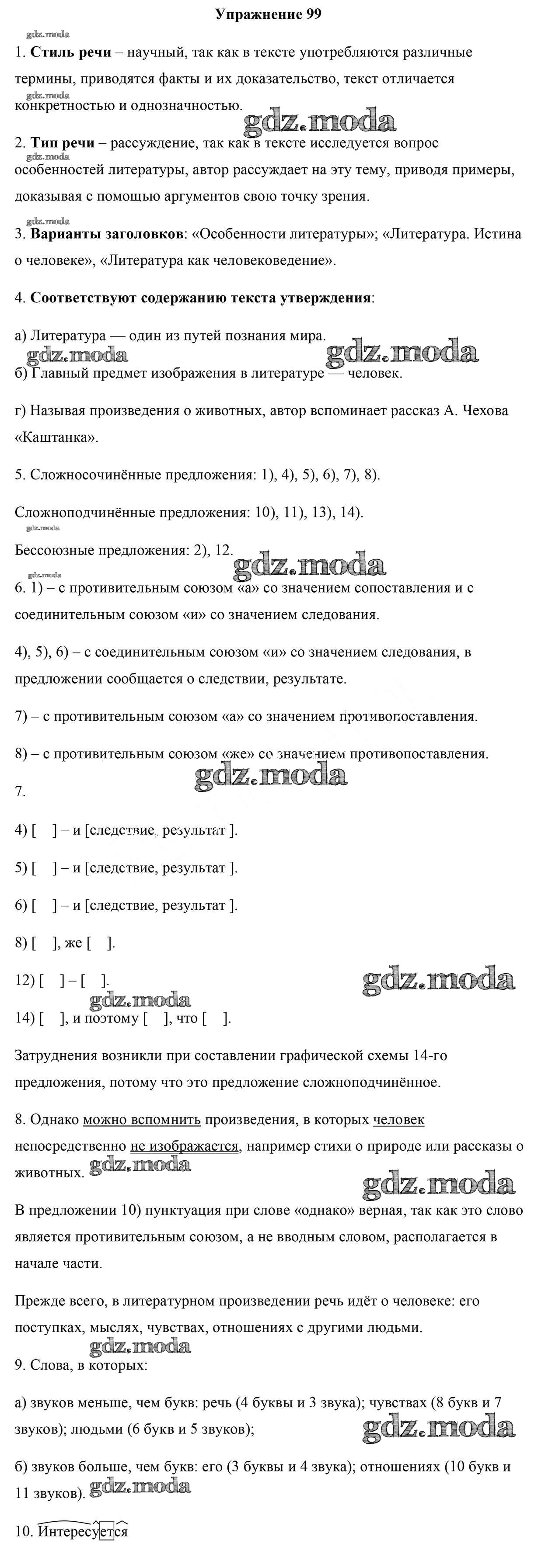 ГДЗ решение к заданию № 99 Русский язык 9 класс Мурина Л.A Национальный институт образования 2011 ФГОС бесплатно на гдз.мода!