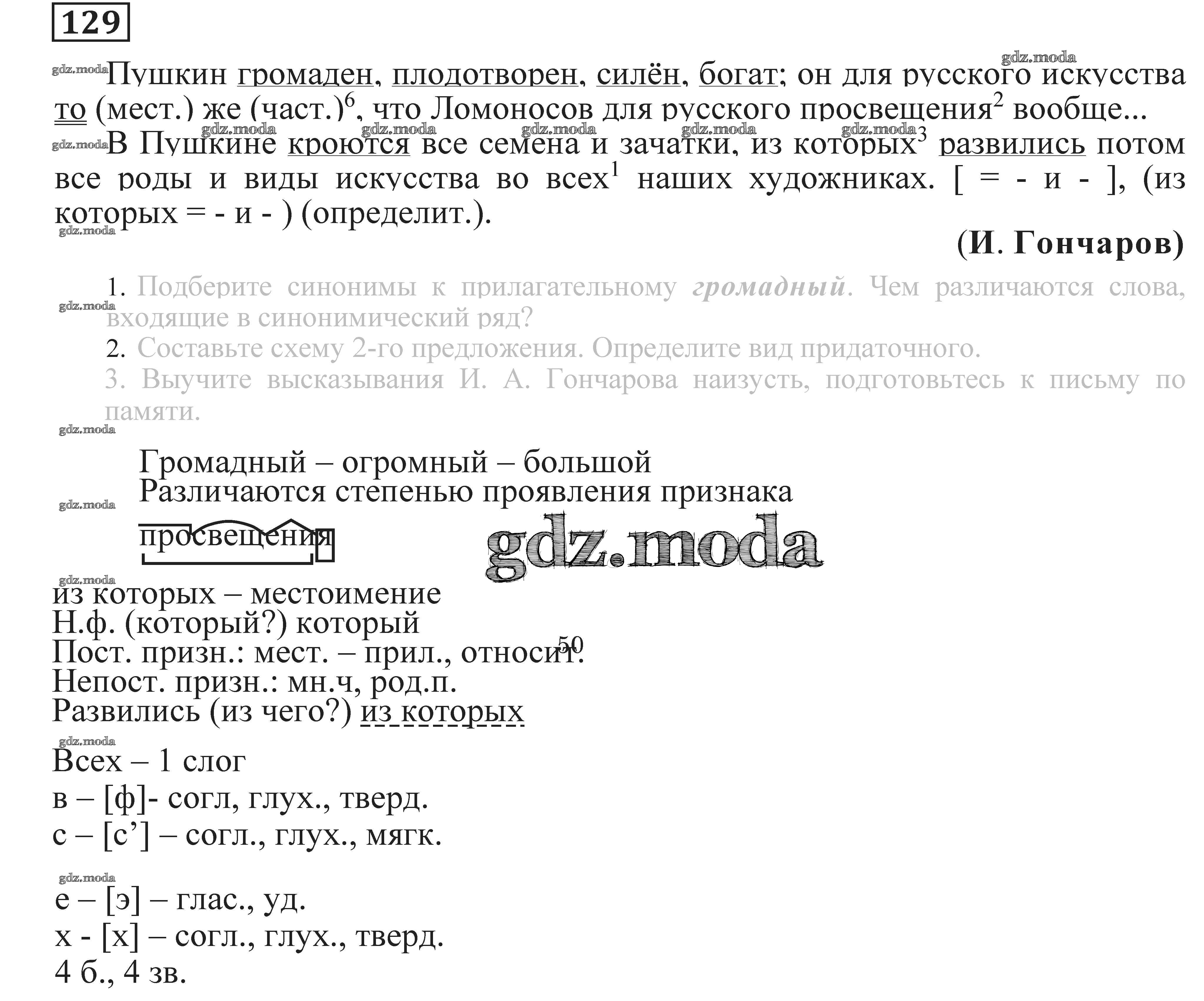 ОТВЕТ на задание № 129 Практика по Русскому языку 9 класс Пичугов