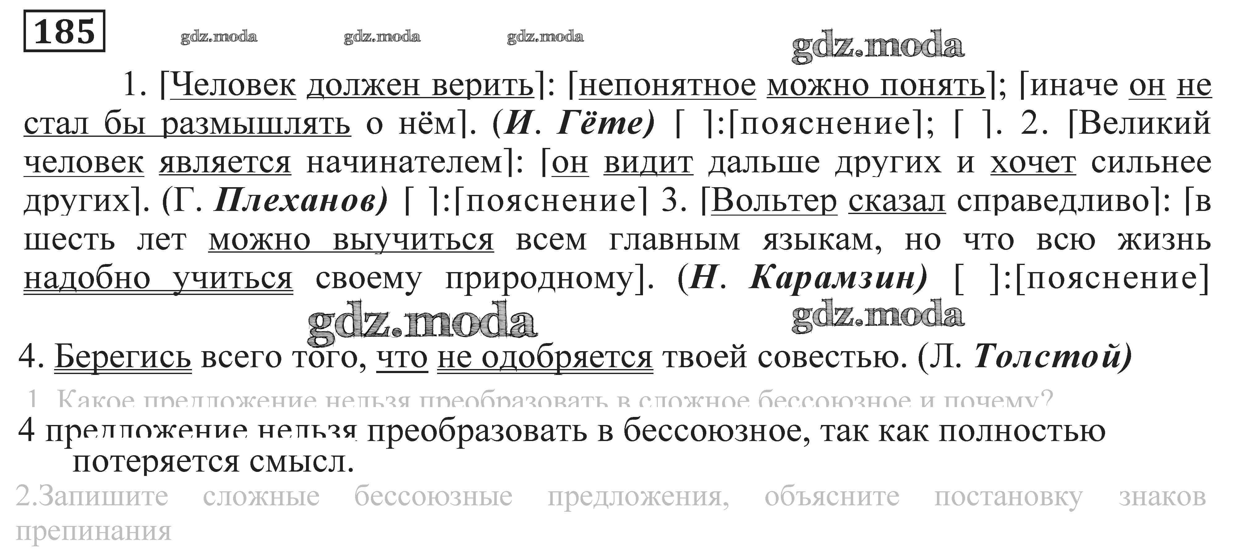 ОТВЕТ на задание № 185 Практика по Русскому языку 9 класс Пичугов