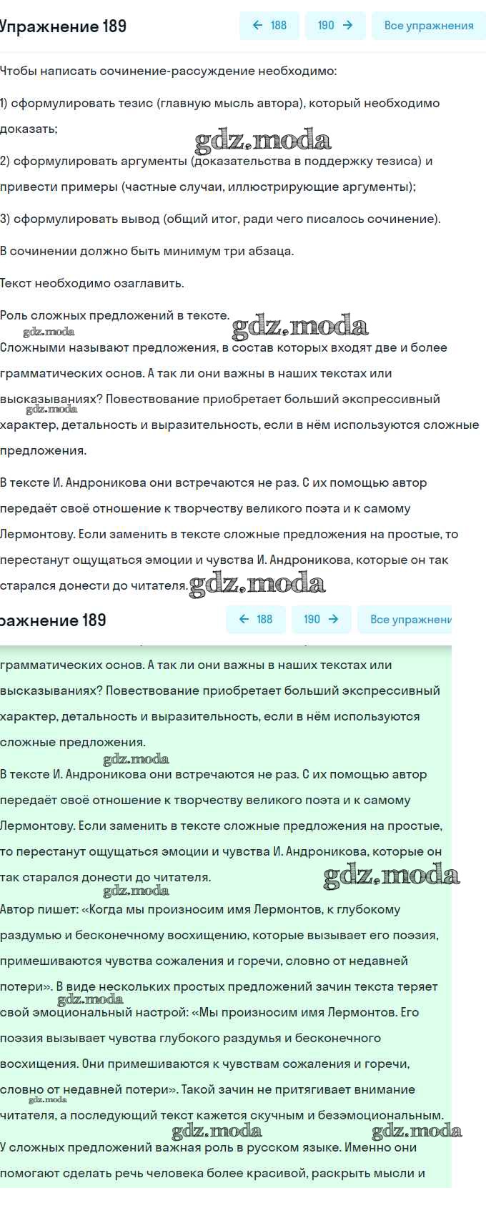 ОТВЕТ на задание № 189 Практика по Русскому языку 9 класс Пичугов