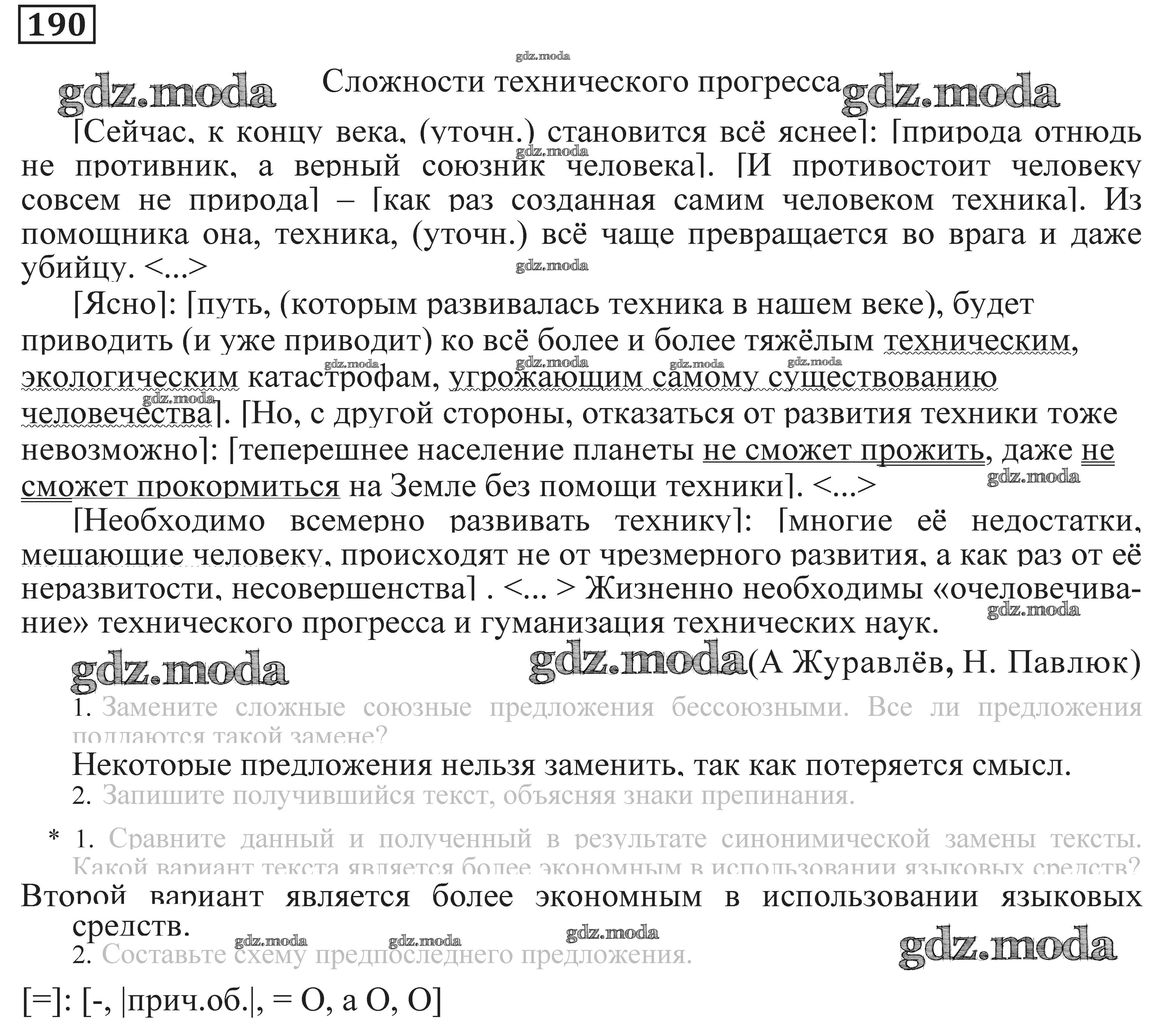 ОТВЕТ на задание № 190 Практика по Русскому языку 9 класс Пичугов