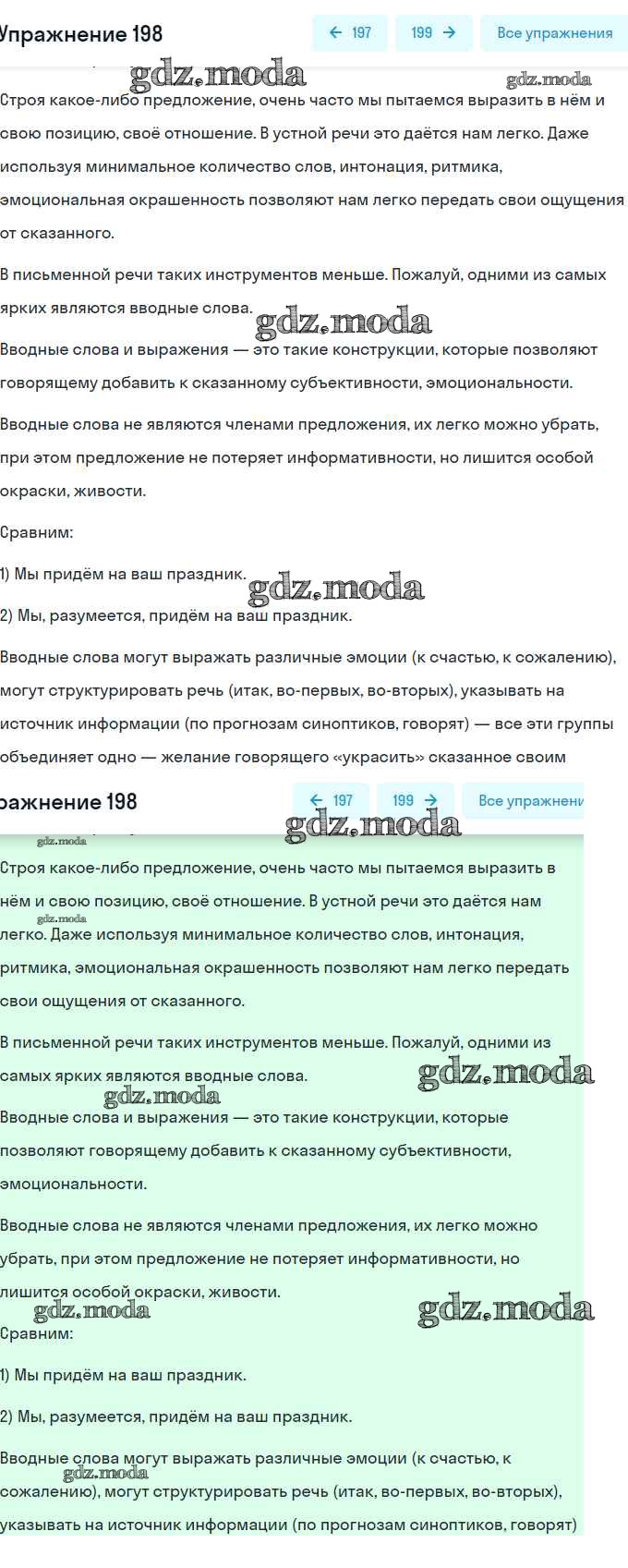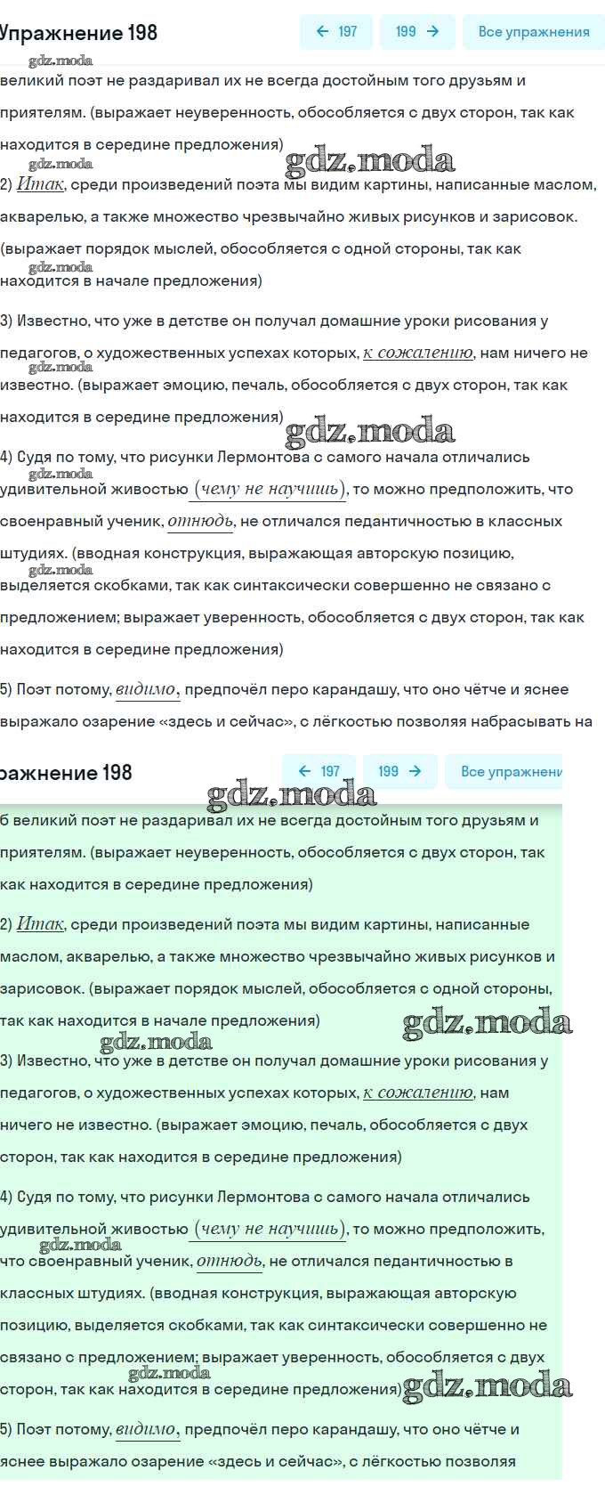 ОТВЕТ на задание № 198 Практика по Русскому языку 9 класс Пичугов