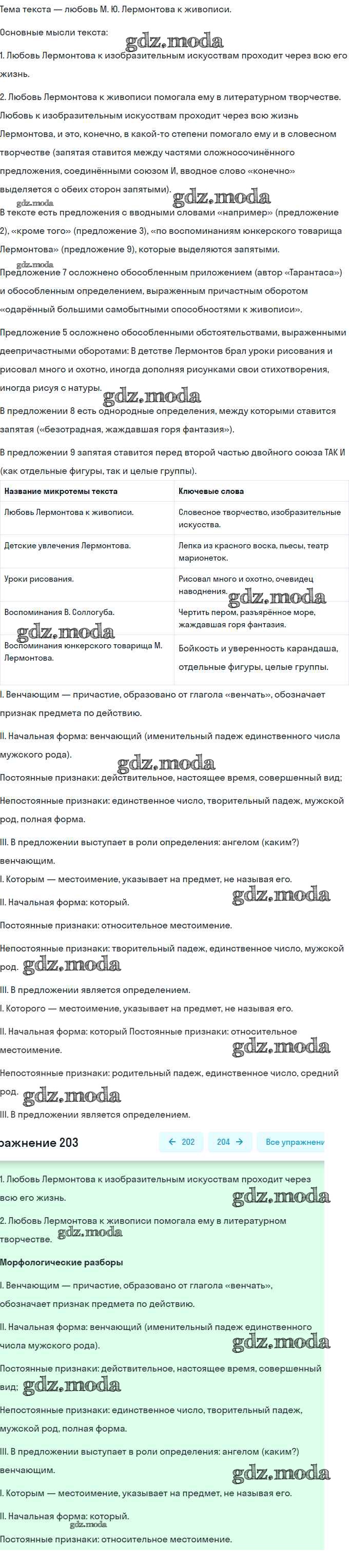 ОТВЕТ на задание № 203 Практика по Русскому языку 9 класс Пичугов