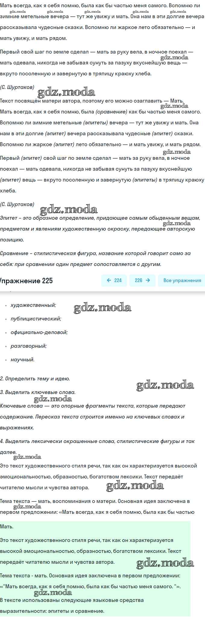 ОТВЕТ на задание № 225 Практика по Русскому языку 9 класс Пичугов
