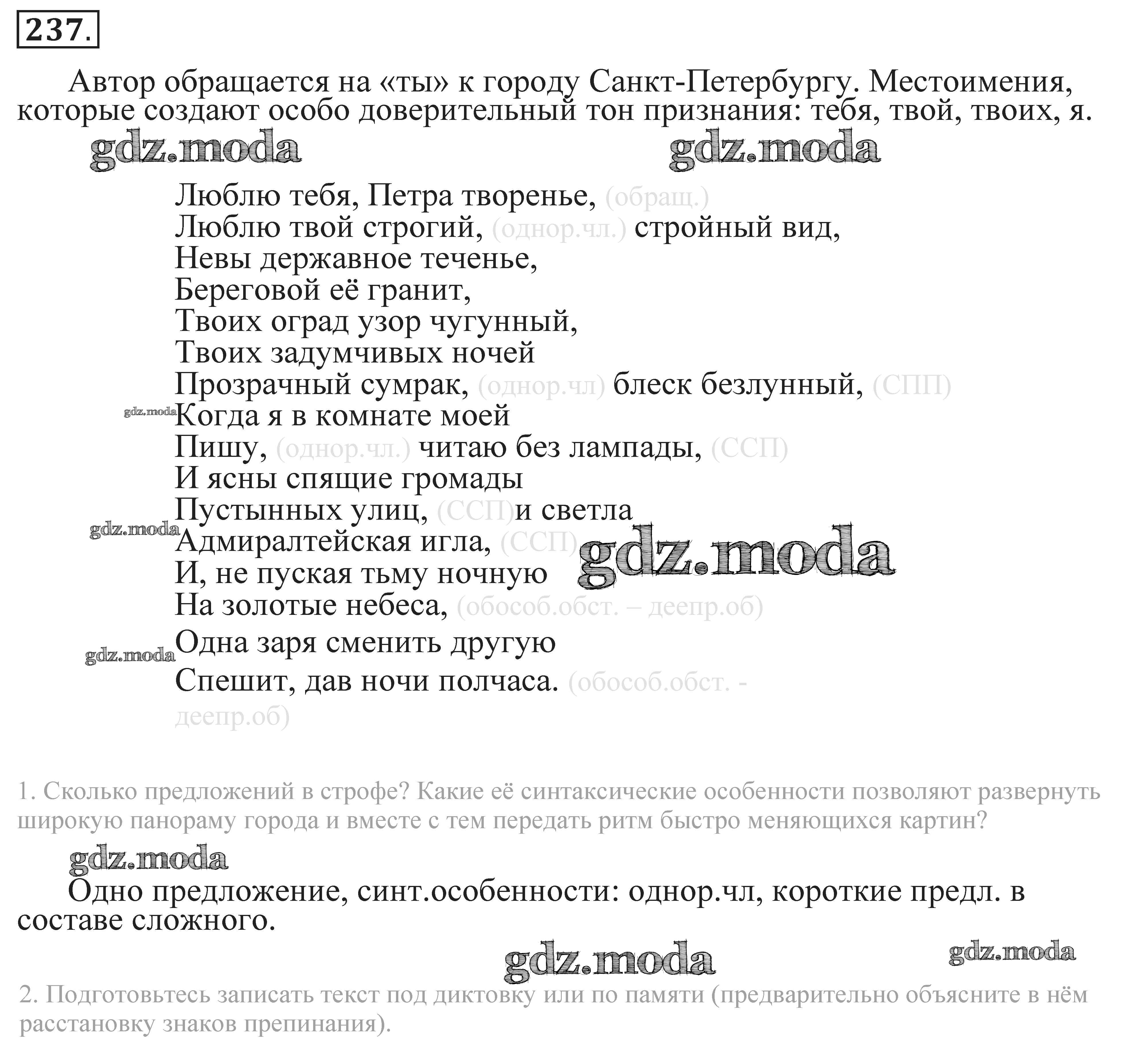ОТВЕТ на задание № 237 Практика по Русскому языку 9 класс Пичугов