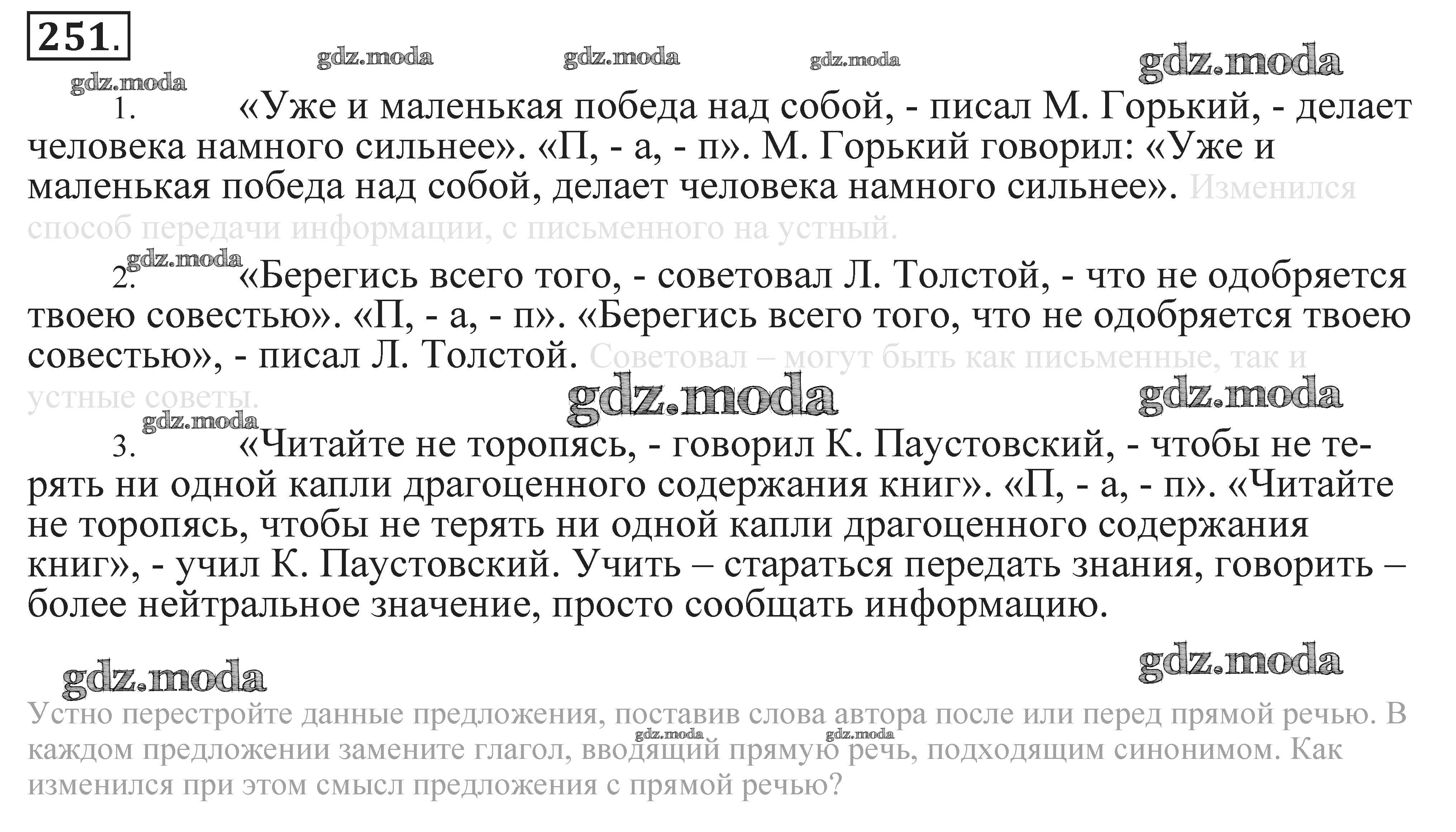 ГДЗ решение к заданию № 251 Русский язык 9 класс практика Пичугов Ю.С. Просвещение, Дрофа 2022, 2012 бесплатно на гдз.мода!