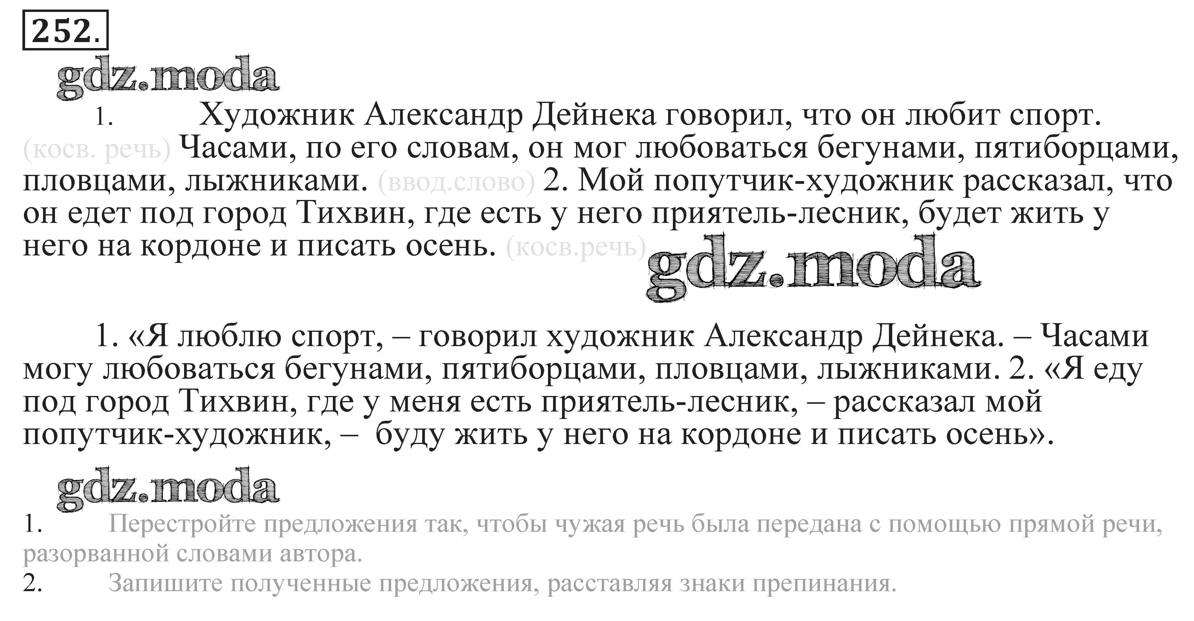 ГДЗ решение к заданию № 252 Русский язык 9 класс практика Пичугов Ю.С. Просвещение, Дрофа 2022, 2012 бесплатно на гдз.мода!