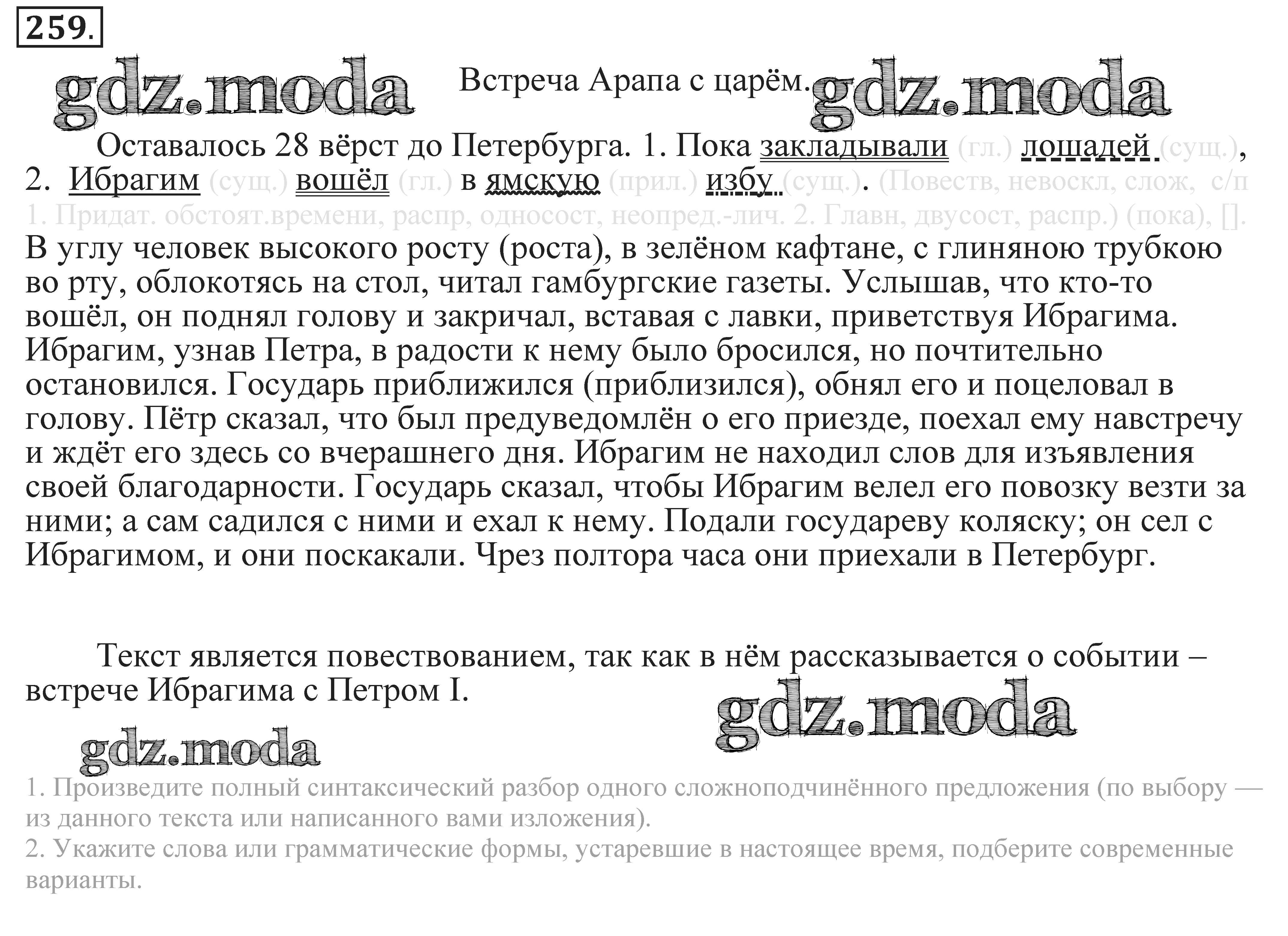 ГДЗ решение к заданию № 259 Русский язык 9 класс практика Пичугов Ю.С. Просвещение, Дрофа 2022, 2012 бесплатно на гдз.мода!