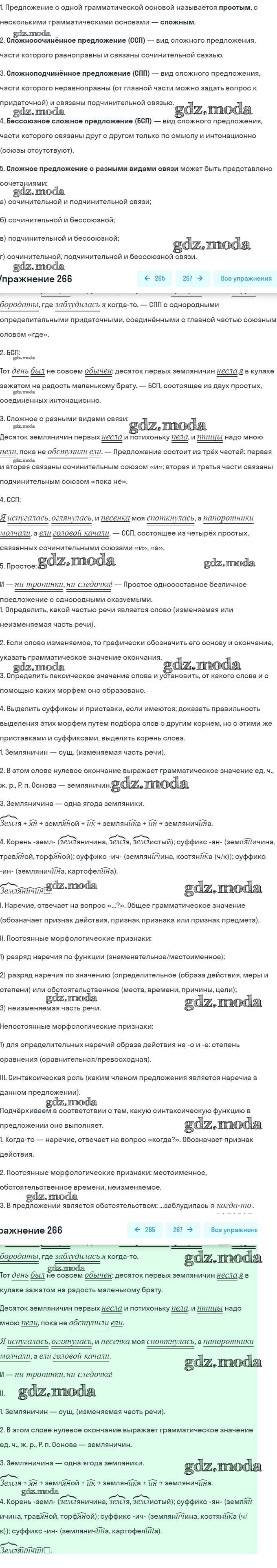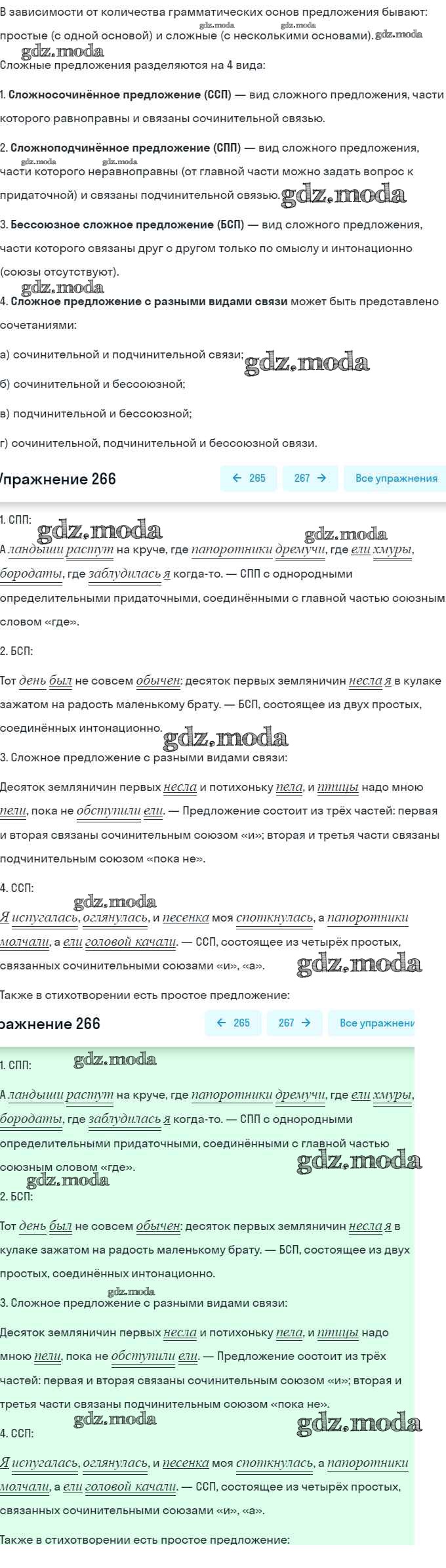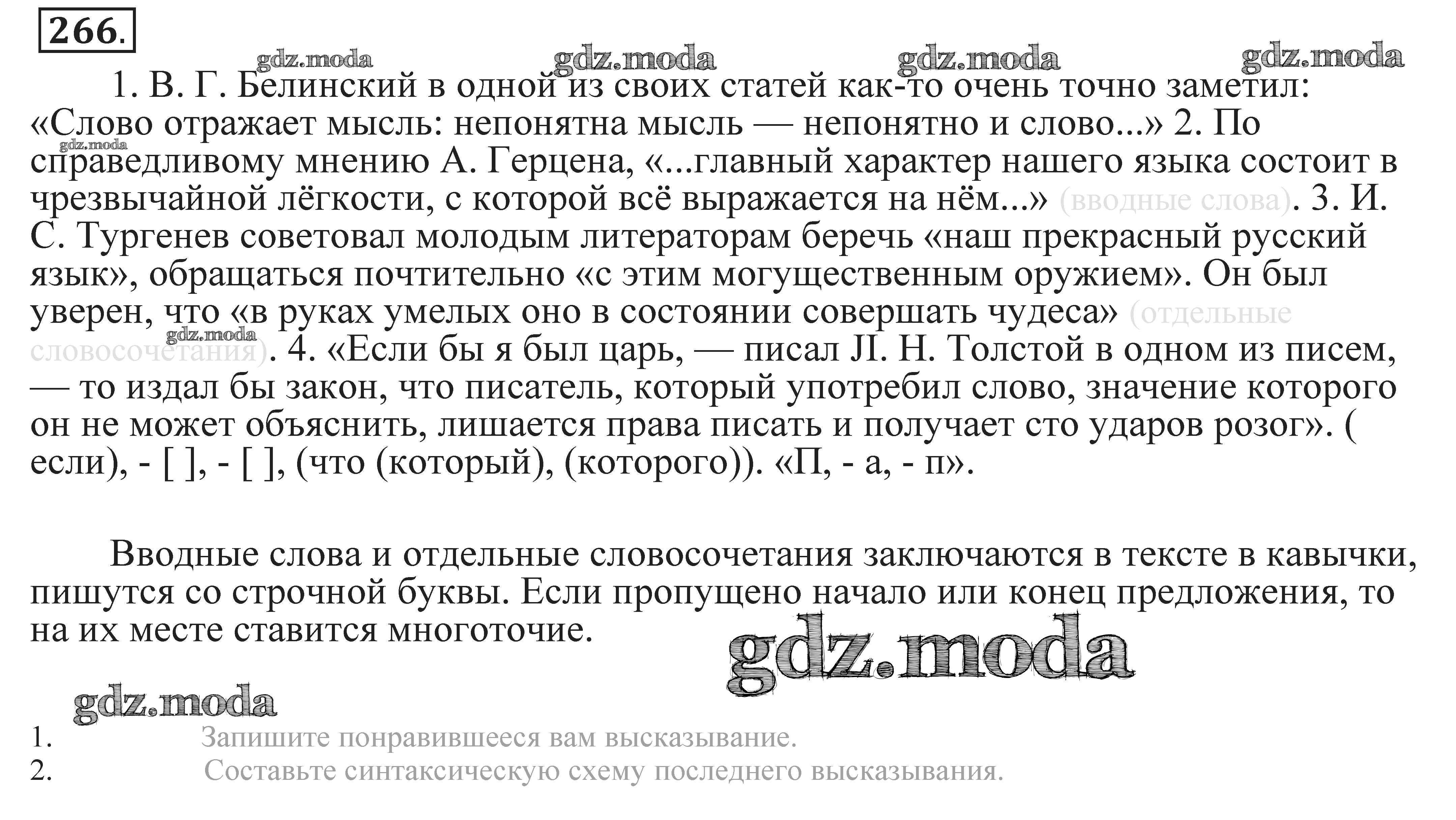 ОТВЕТ на задание № 266 Практика по Русскому языку 9 класс Пичугов