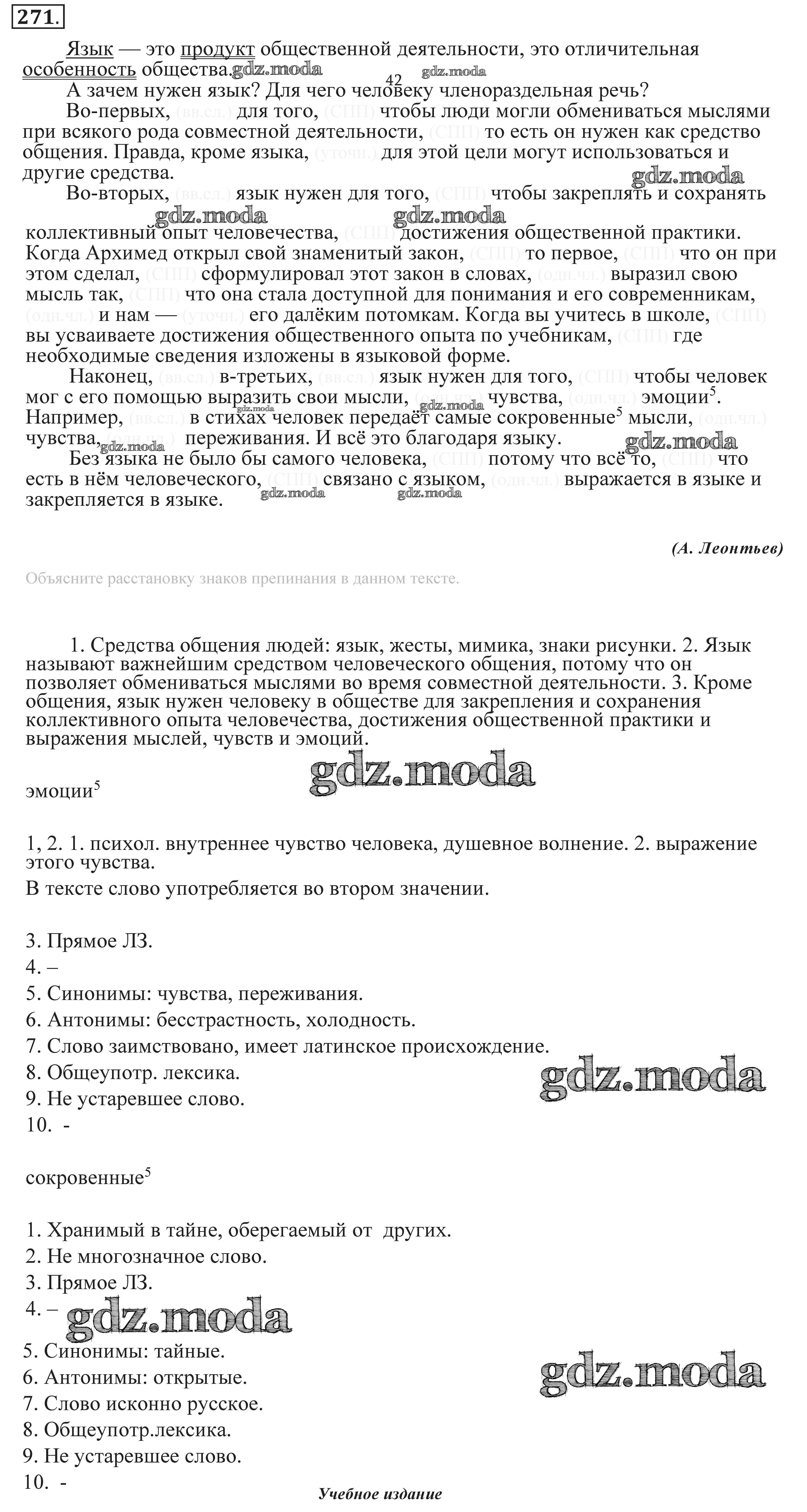 ОТВЕТ на задание № 271 Практика по Русскому языку 9 класс Пичугов