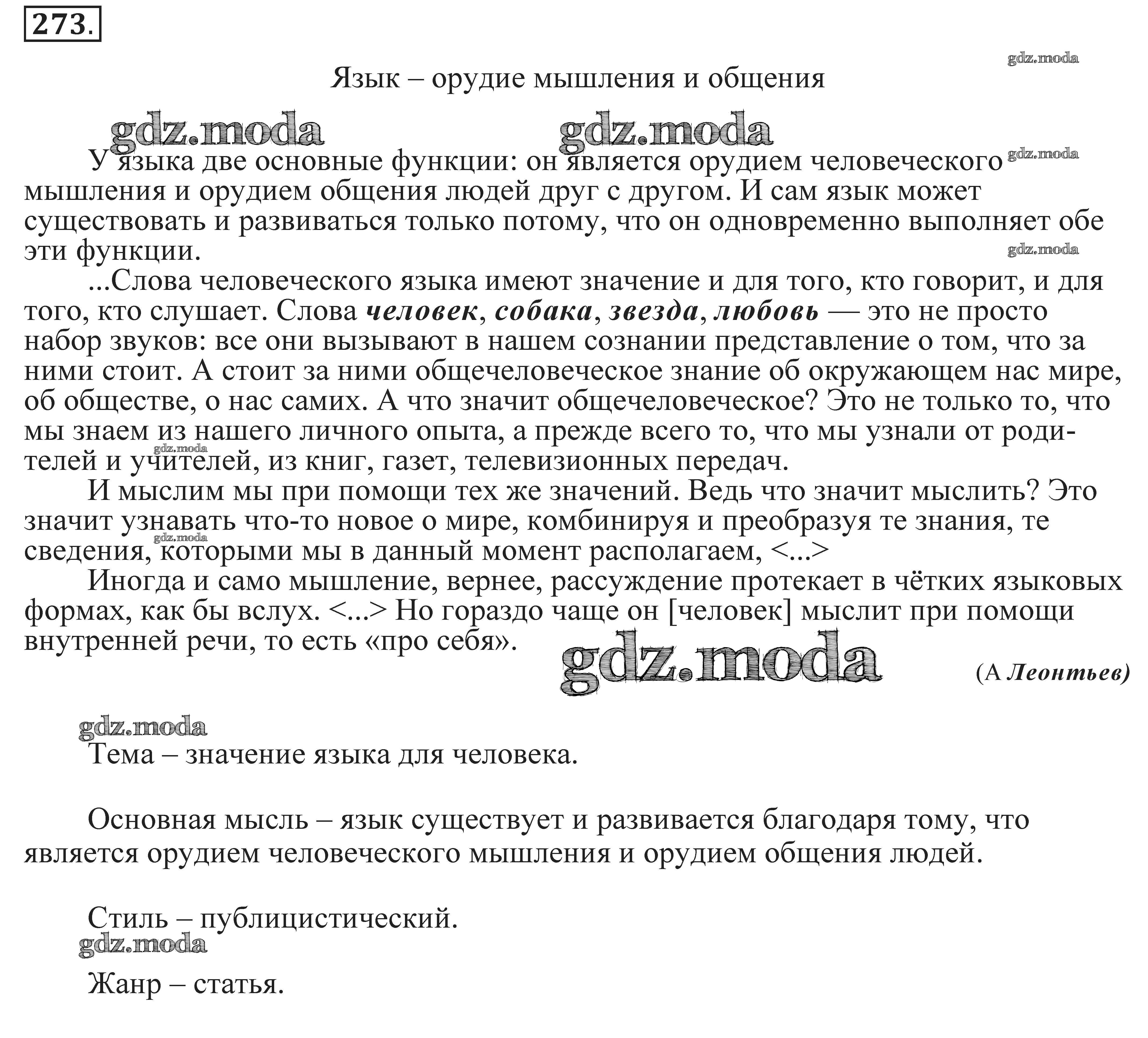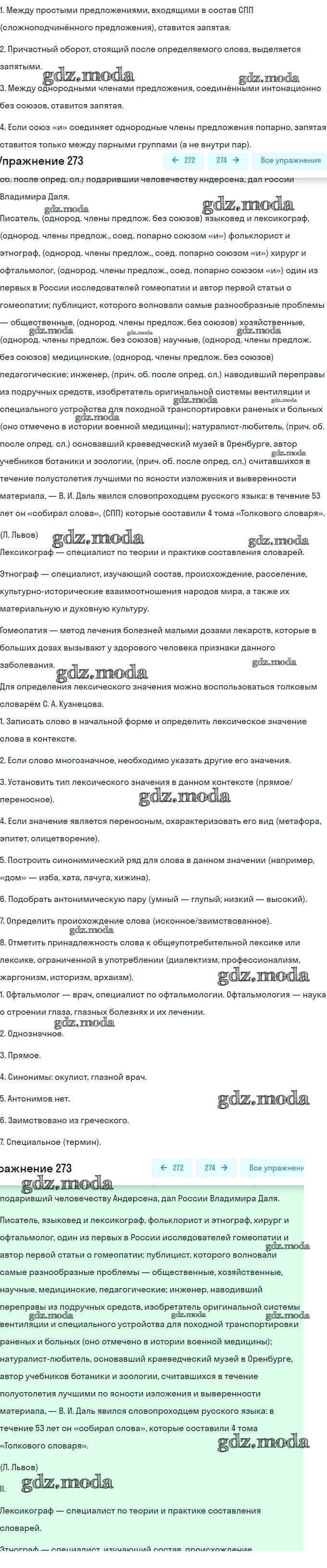 ОТВЕТ на задание № 273 Практика по Русскому языку 9 класс Пичугов