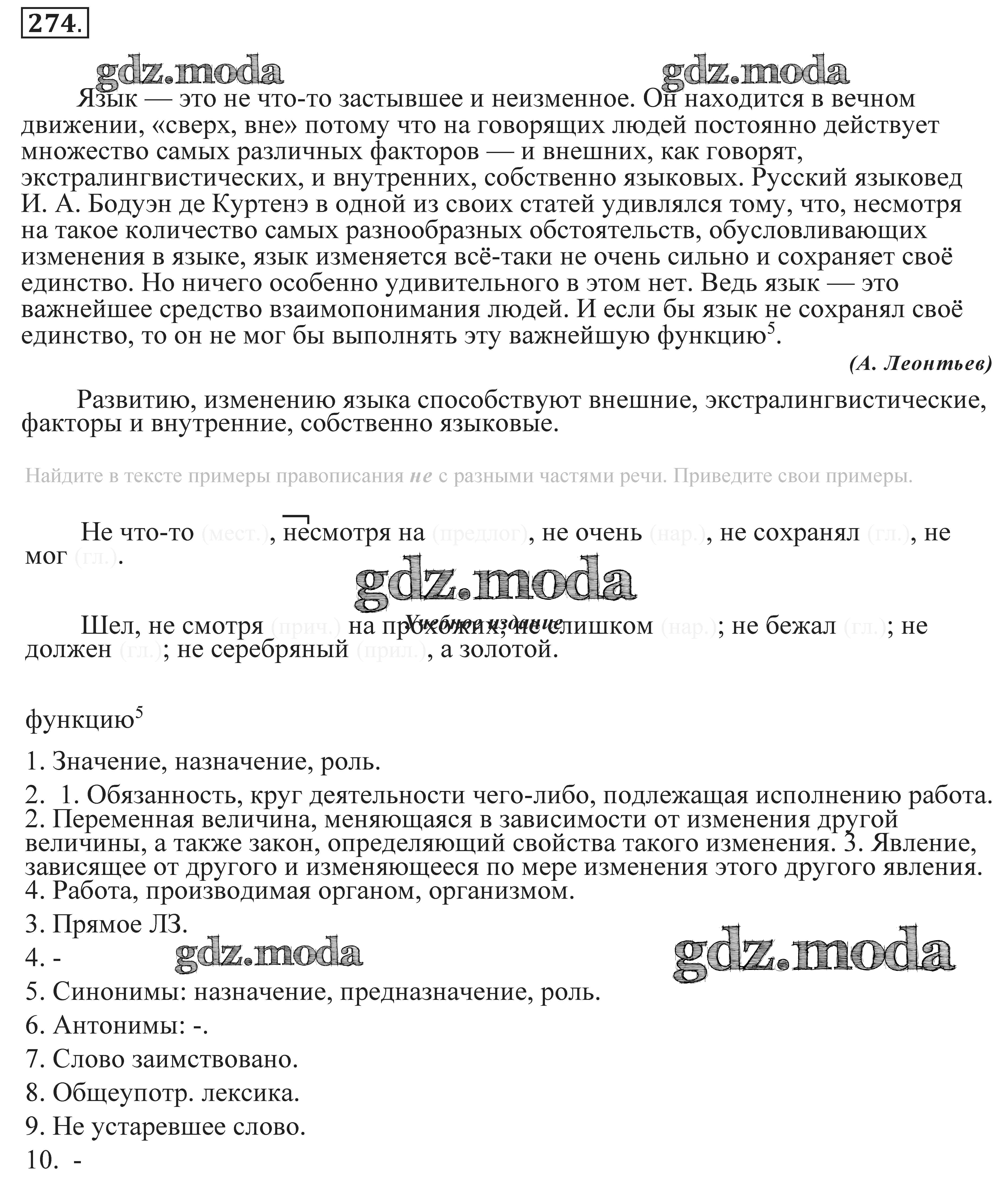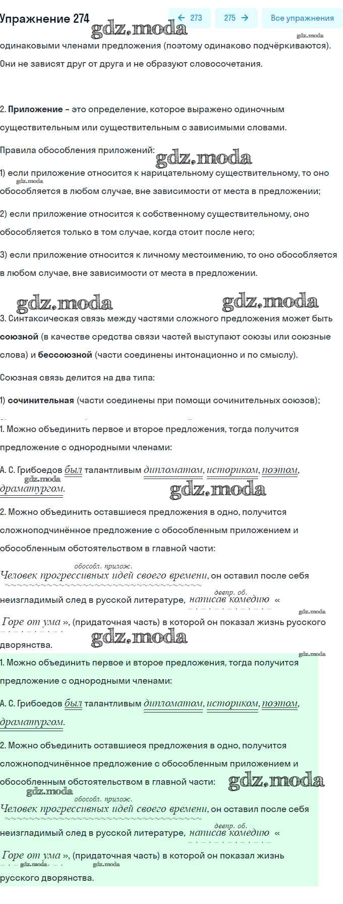 ГДЗ решение к заданию № 274 Русский язык 9 класс практика Пичугов Ю.С. Просвещение, Дрофа 2022, 2012 бесплатно на гдз.мода!