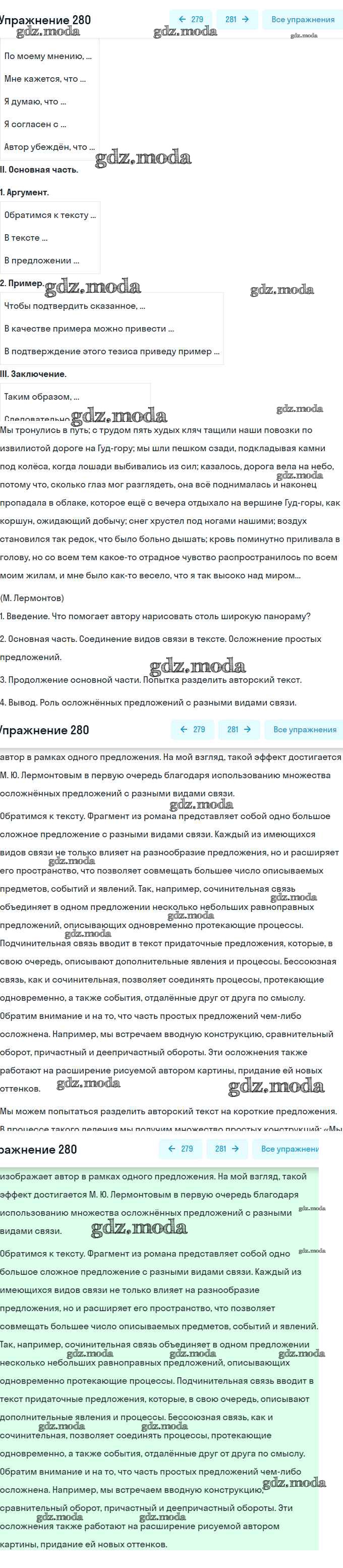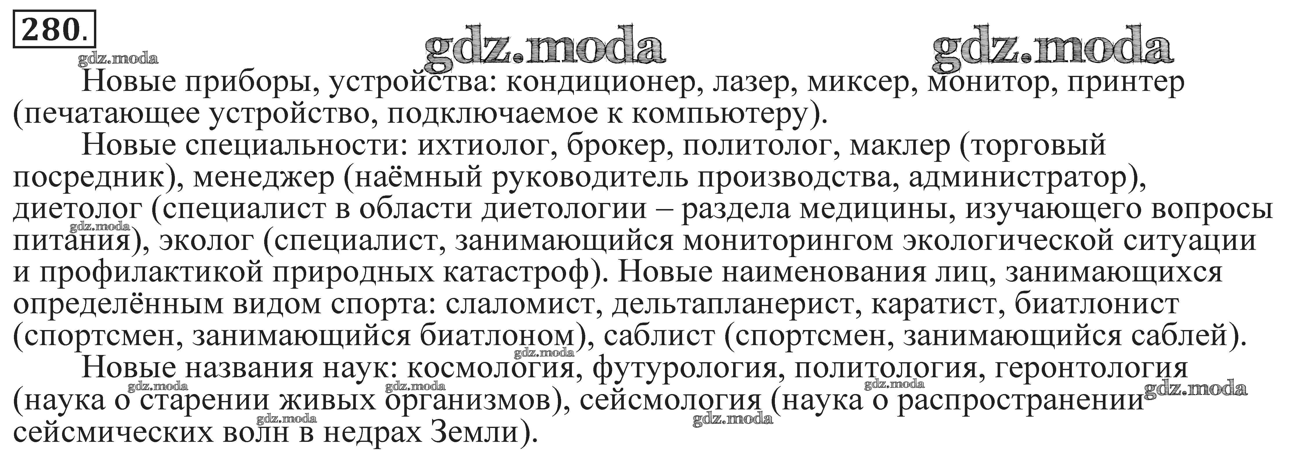 ОТВЕТ на задание № 280 Практика по Русскому языку 9 класс Пичугов