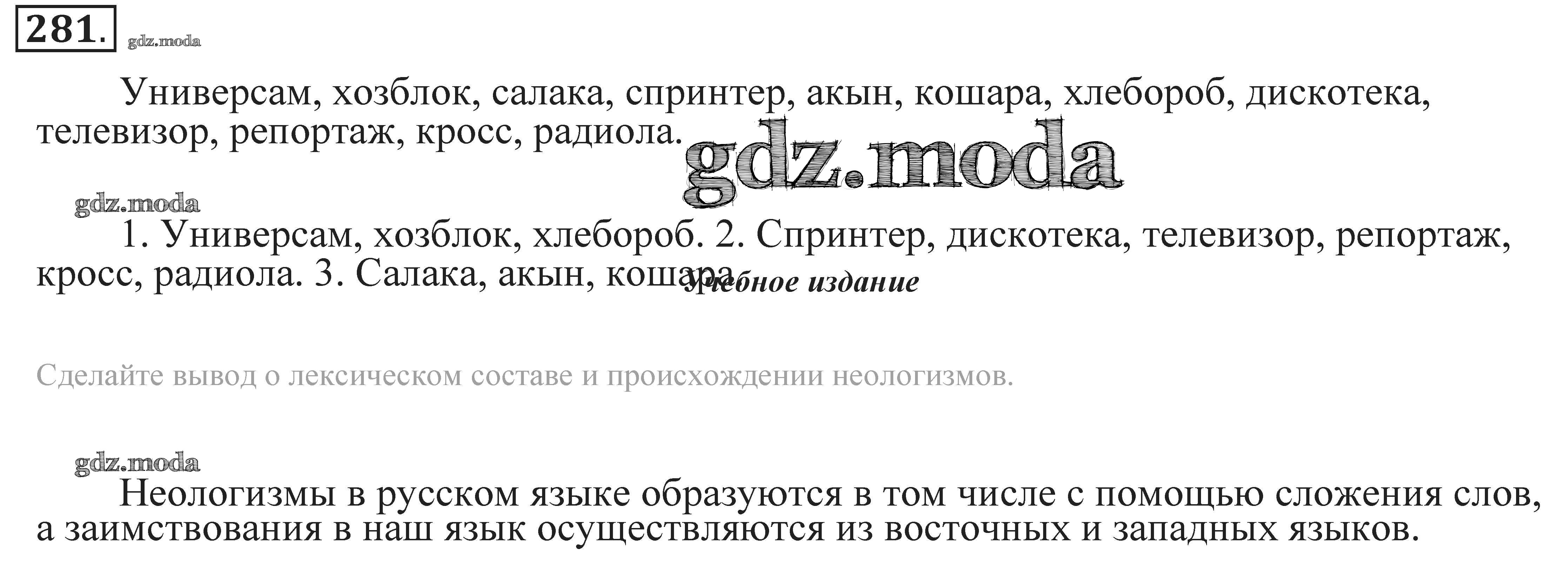 ГДЗ решение к заданию № 281 Русский язык 9 класс практика Пичугов Ю.С. Просвещение, Дрофа 2022, 2012 бесплатно на гдз.мода!