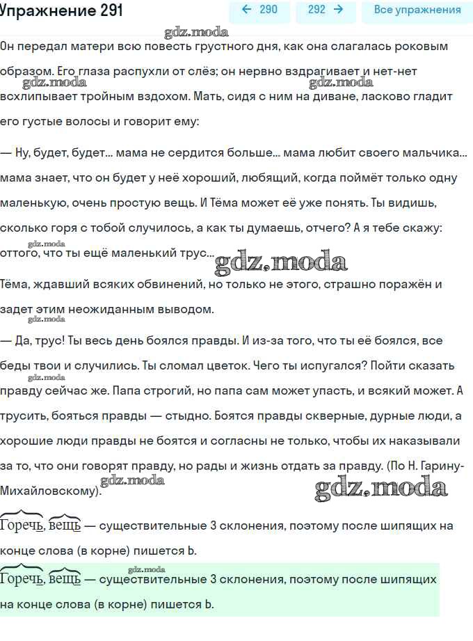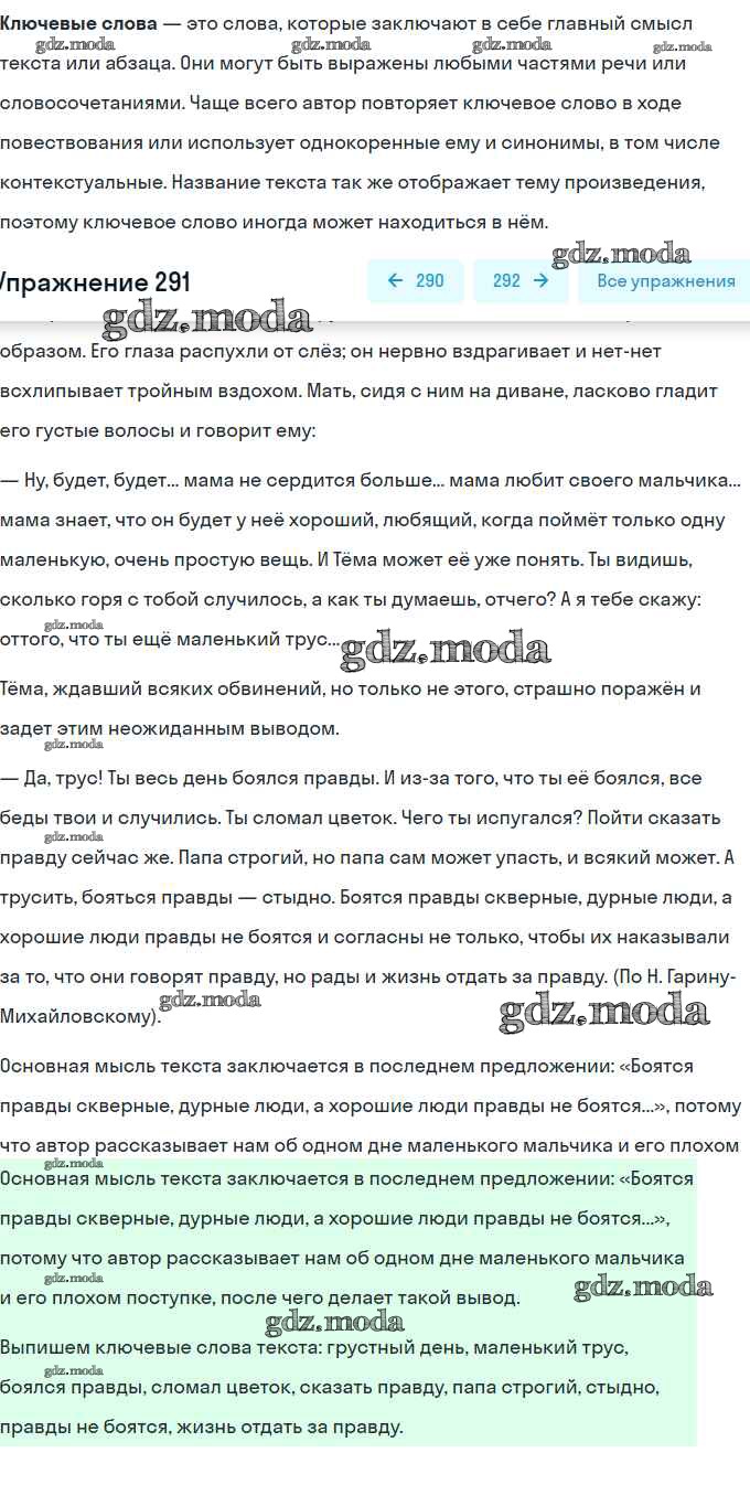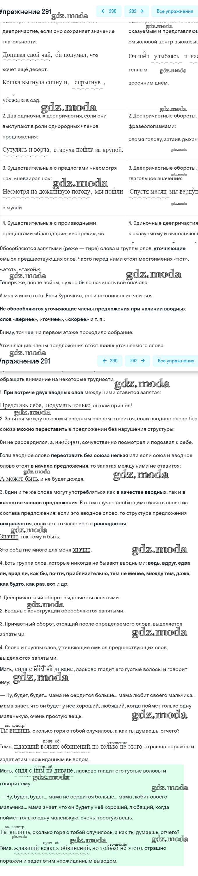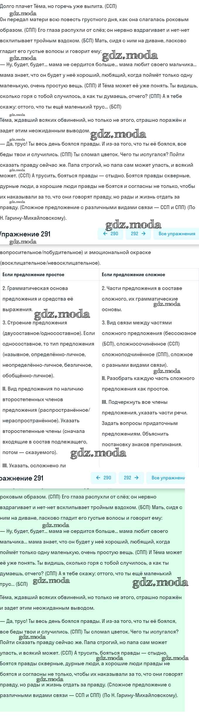 ОТВЕТ на задание № 291 Практика по Русскому языку 9 класс Пичугов