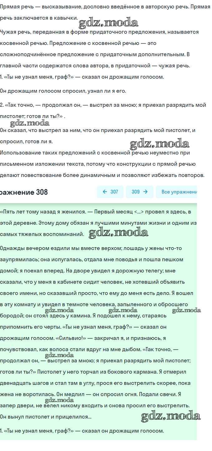 ГДЗ решение к заданию № 308 Русский язык 9 класс практика Пичугов Ю.С. Просвещение, Дрофа 2022, 2012 бесплатно на гдз.мода!
