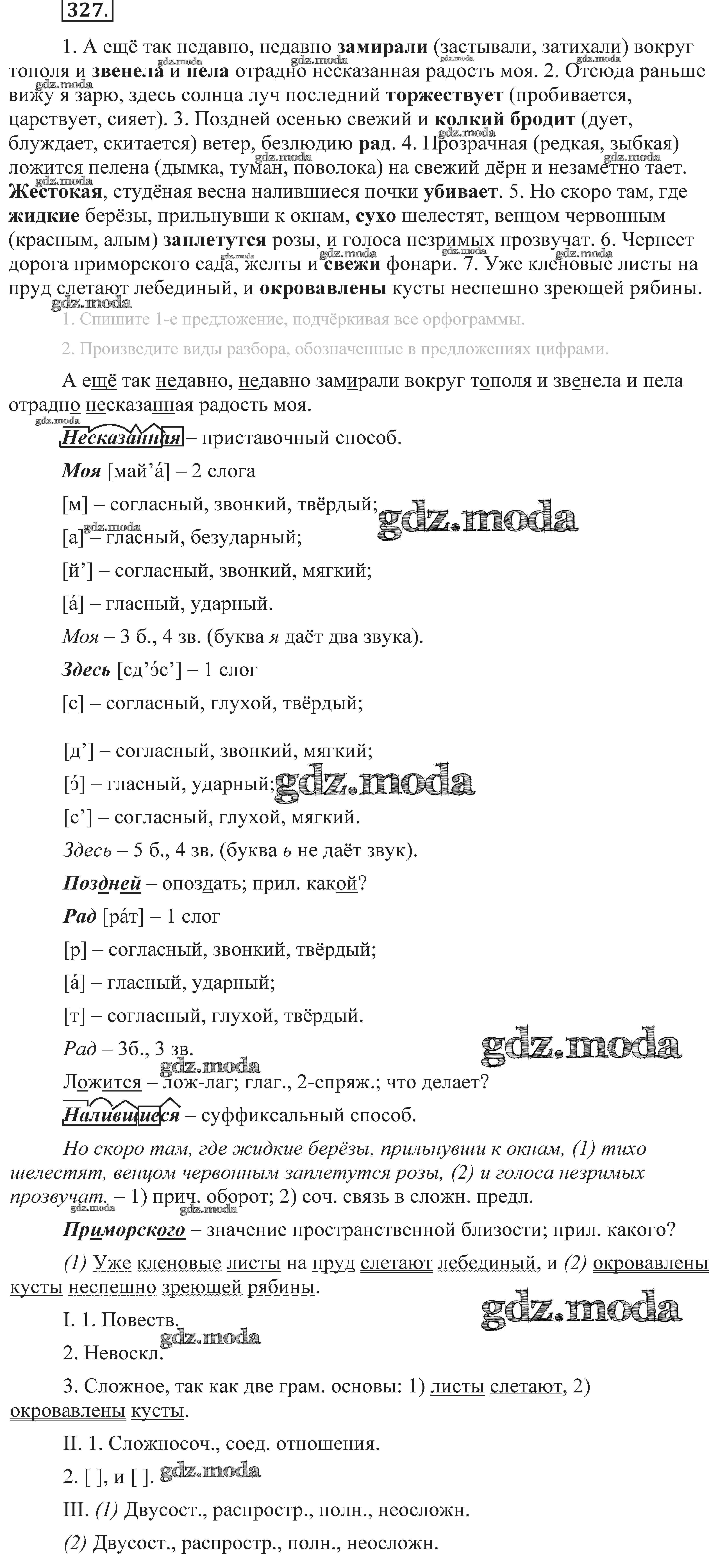 ОТВЕТ на задание № 327 Практика по Русскому языку 9 класс Пичугов
