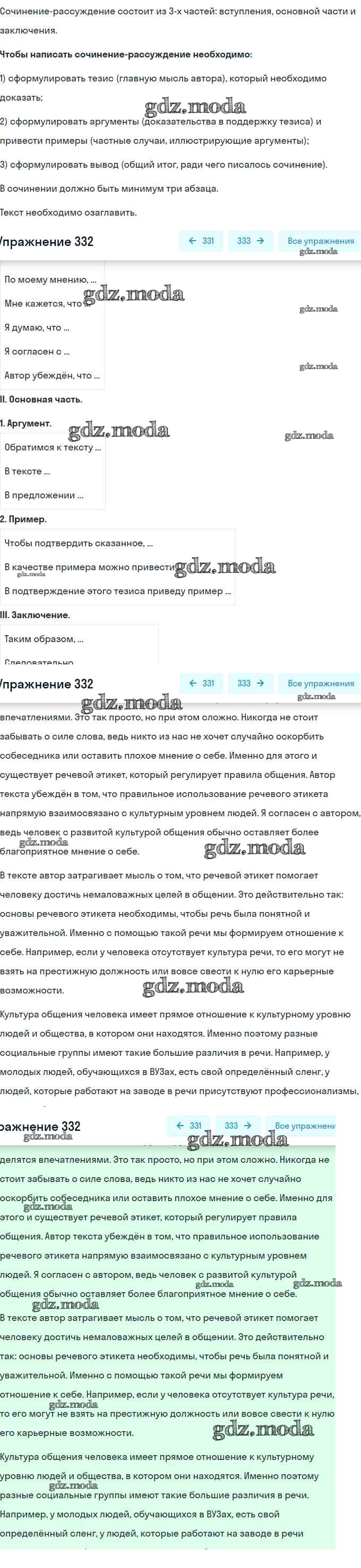ОТВЕТ на задание № 332 Практика по Русскому языку 9 класс Пичугов