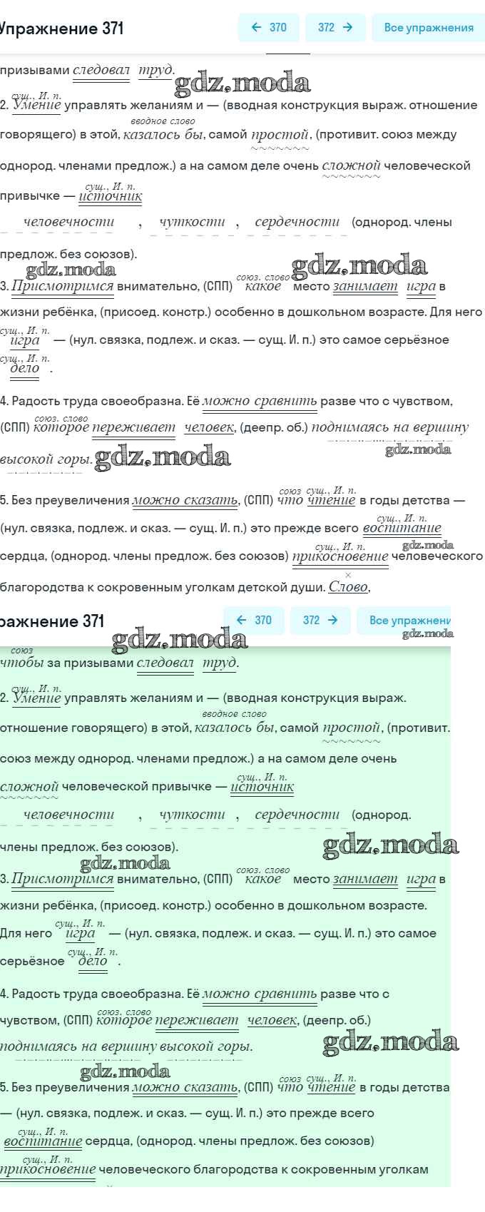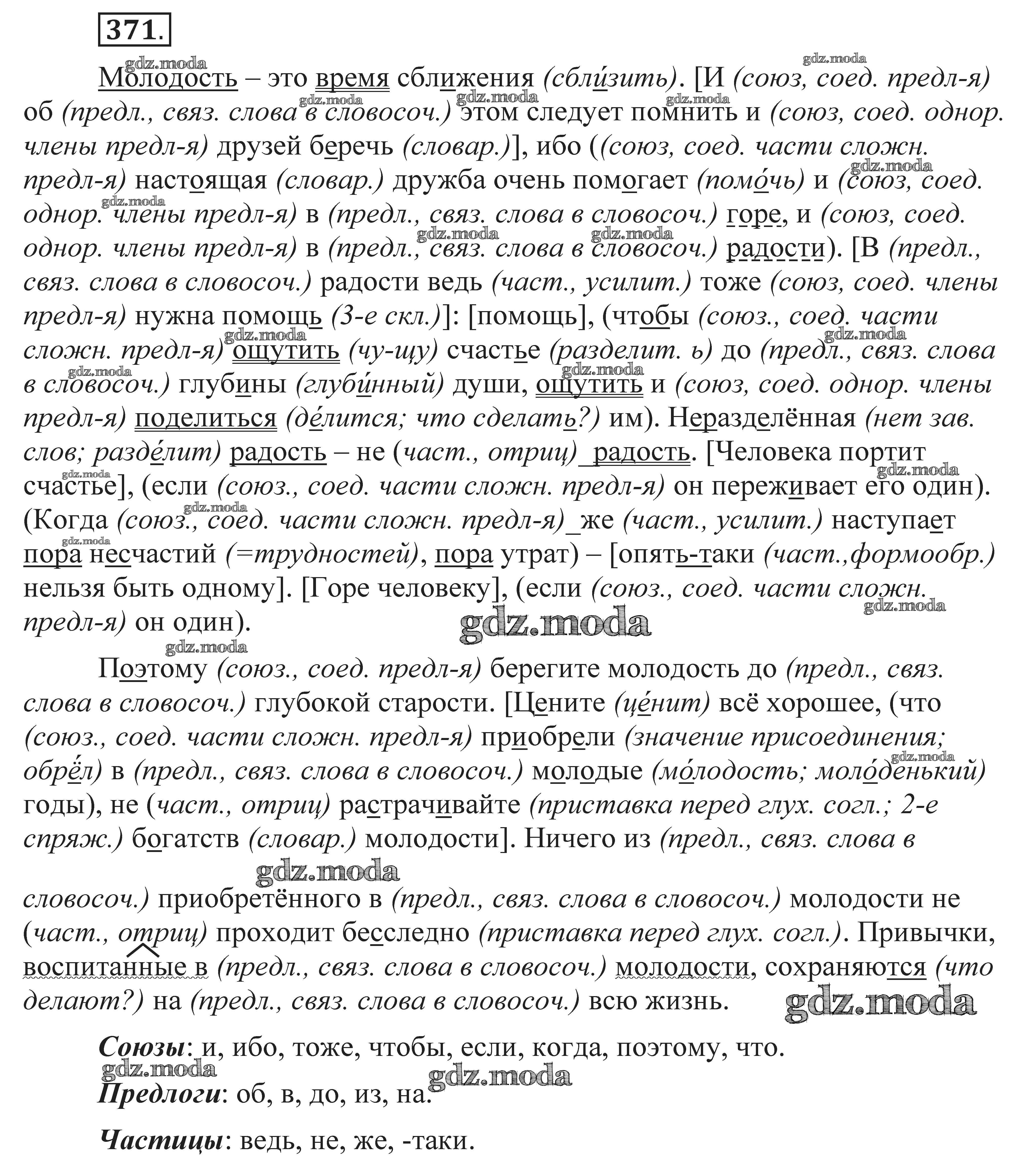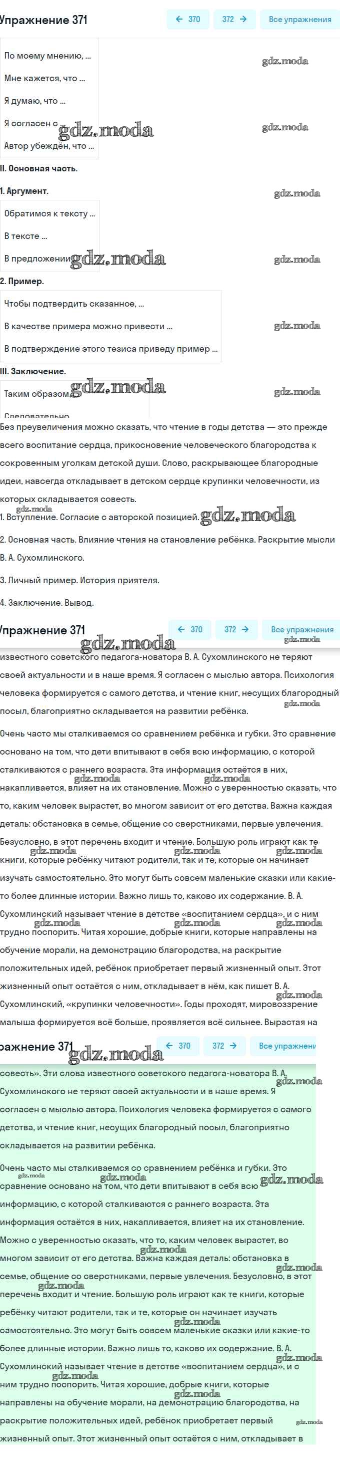 ОТВЕТ на задание № 371 Практика по Русскому языку 9 класс Пичугов