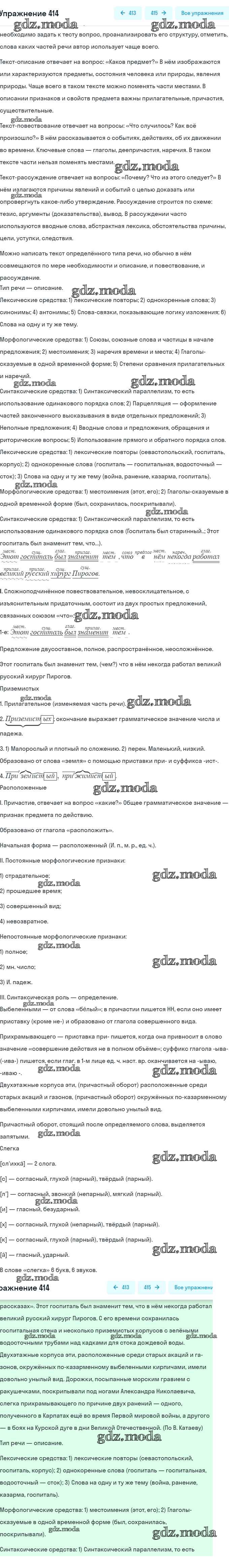 ОТВЕТ на задание № 414 Практика по Русскому языку 9 класс Пичугов
