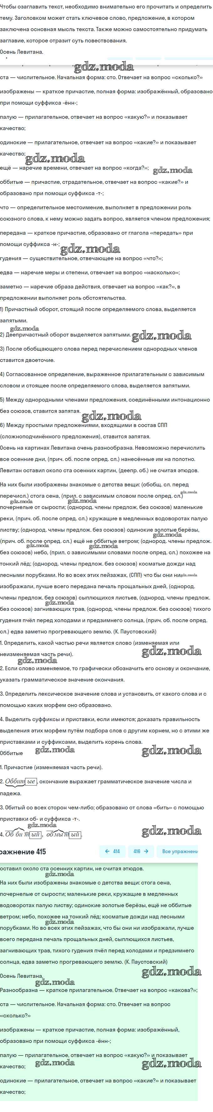 ГДЗ решение к заданию № 415 Русский язык 9 класс практика Пичугов Ю.С. Просвещение, Дрофа 2022, 2012 бесплатно на гдз.мода!
