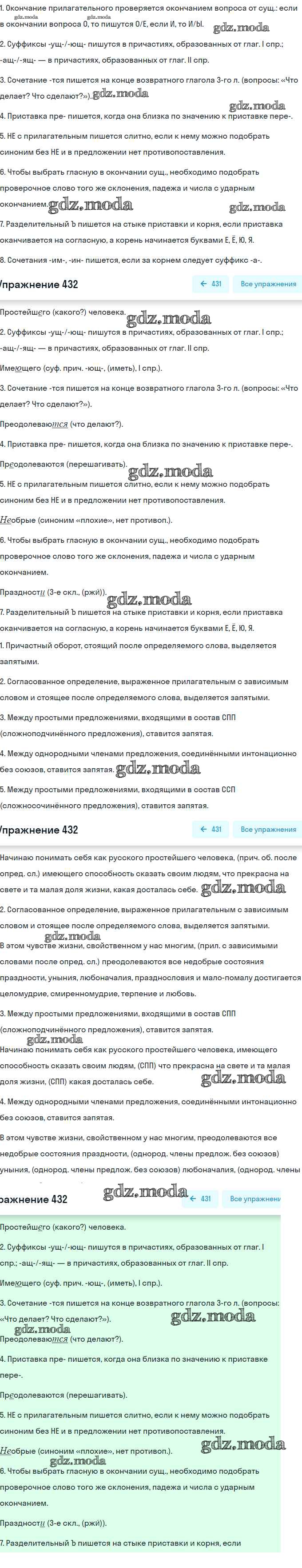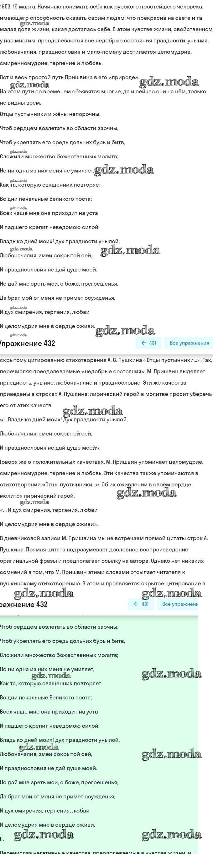 ГДЗ решение к заданию № 432 Русский язык 9 класс практика Пичугов Ю.С. Просвещение, Дрофа 2022, 2012 бесплатно на гдз.мода!