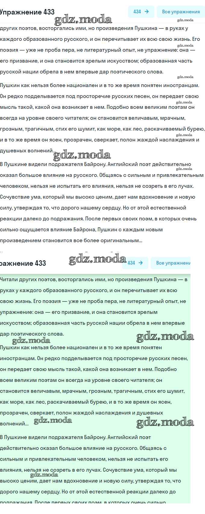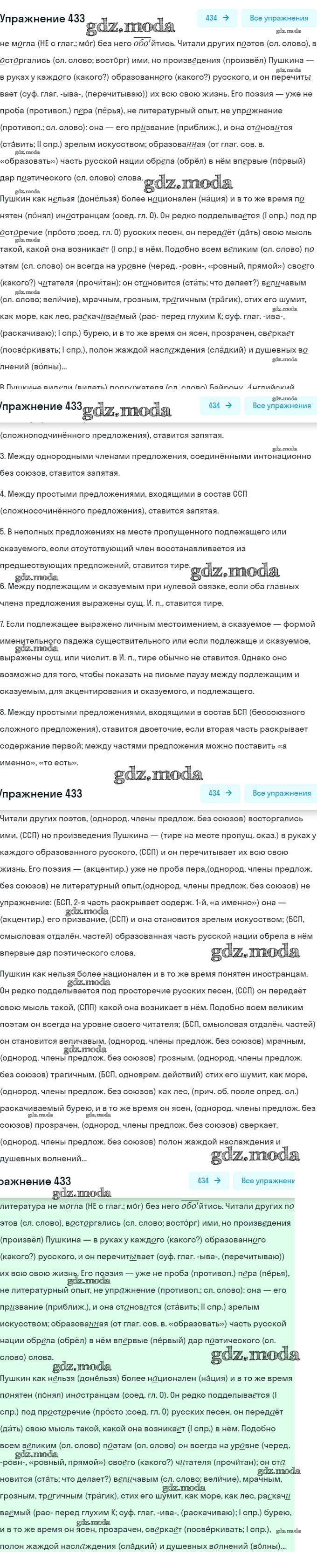 ГДЗ решение к заданию № 433 Русский язык 9 класс практика Пичугов Ю.С. Просвещение, Дрофа 2022, 2012 бесплатно на гдз.мода!
