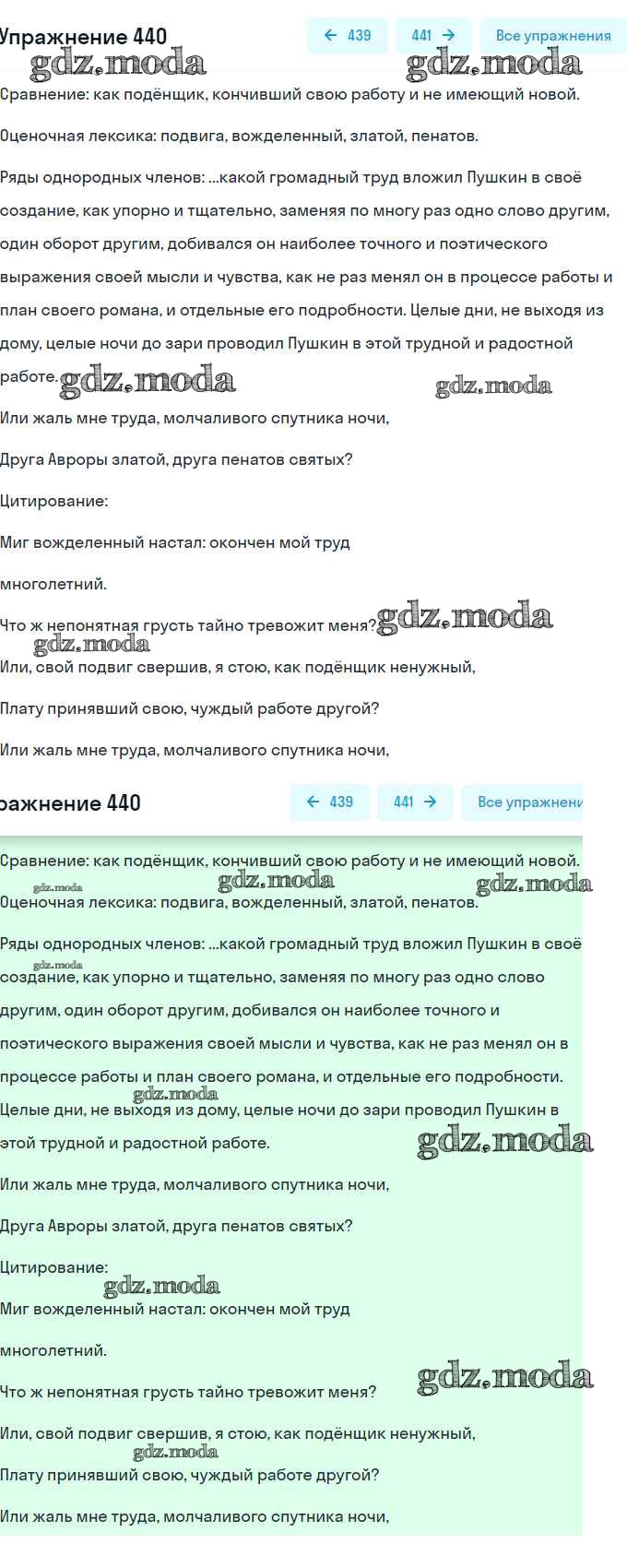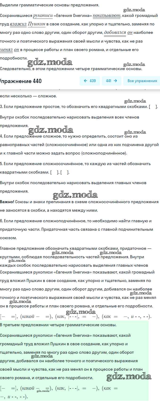 ГДЗ решение к заданию № 440 Русский язык 9 класс практика Пичугов Ю.С. Просвещение, Дрофа 2022, 2012 бесплатно на гдз.мода!