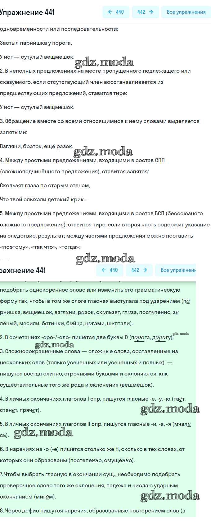 ГДЗ решение к заданию № 441 Русский язык 9 класс практика Пичугов Ю.С. Просвещение, Дрофа 2022, 2012 бесплатно на гдз.мода!