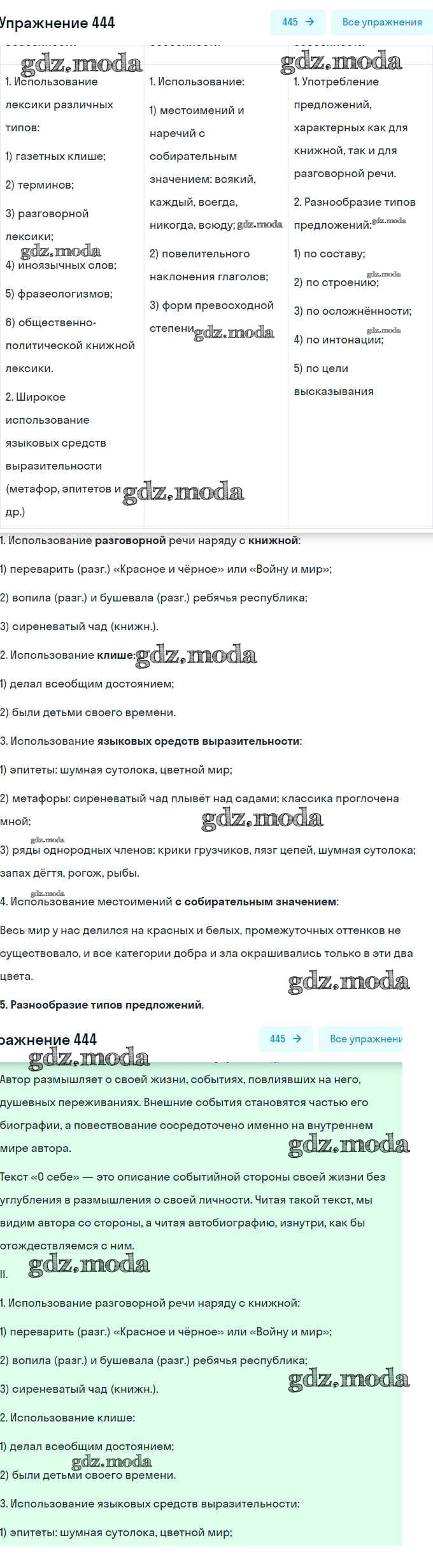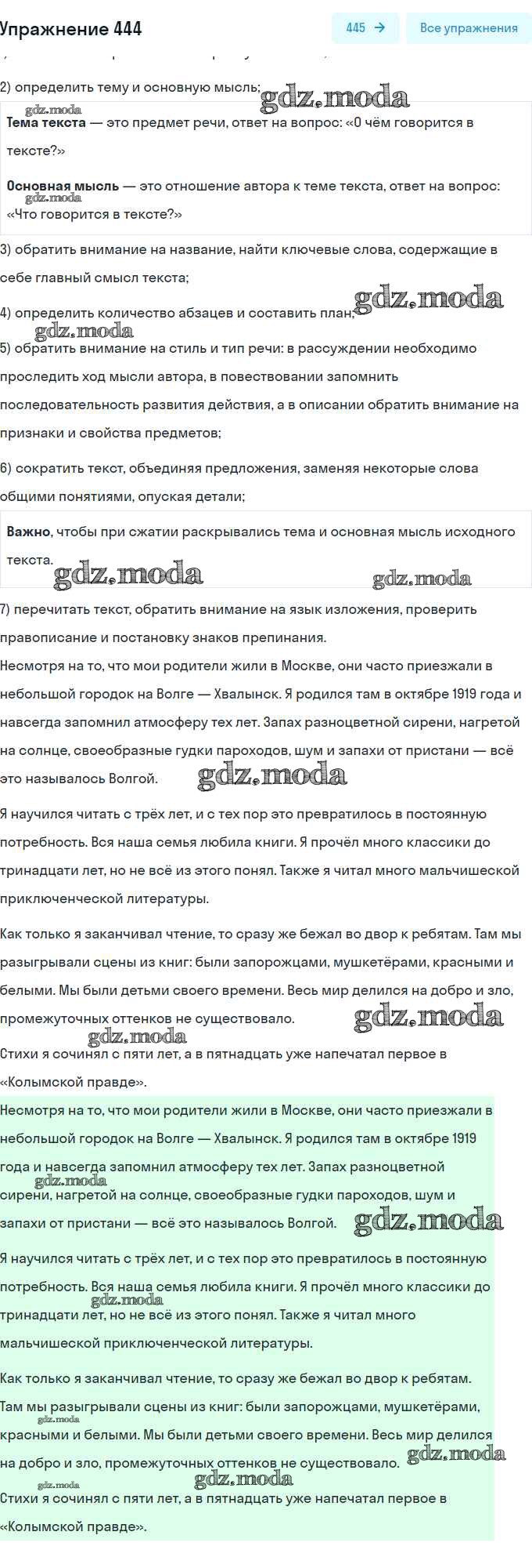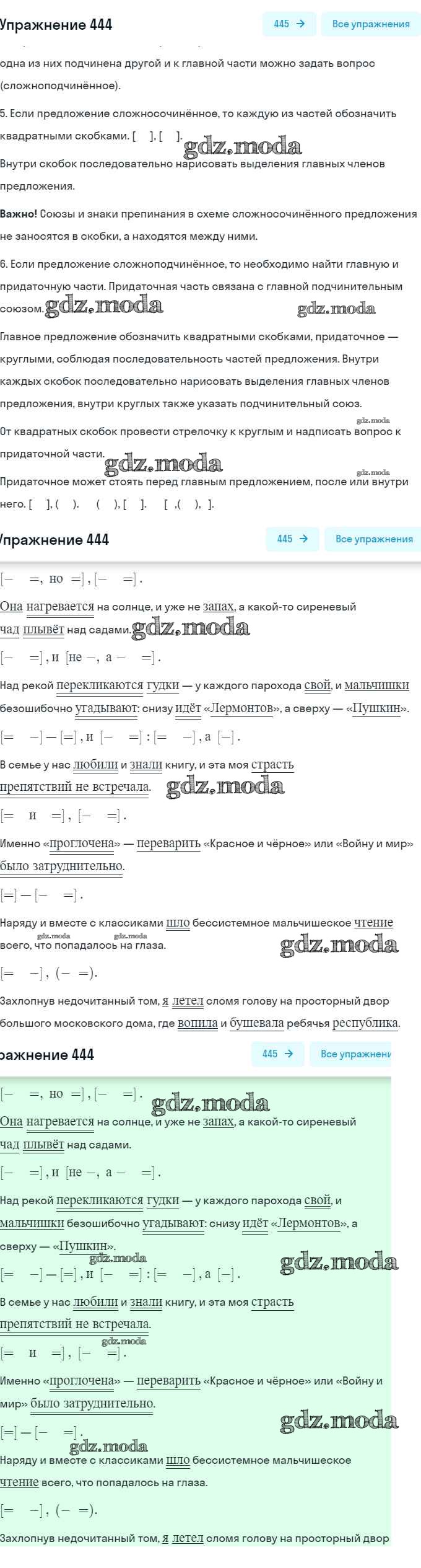ГДЗ решение к заданию № 444 Русский язык 9 класс практика Пичугов Ю.С. Просвещение, Дрофа 2022, 2012 бесплатно на гдз.мода!