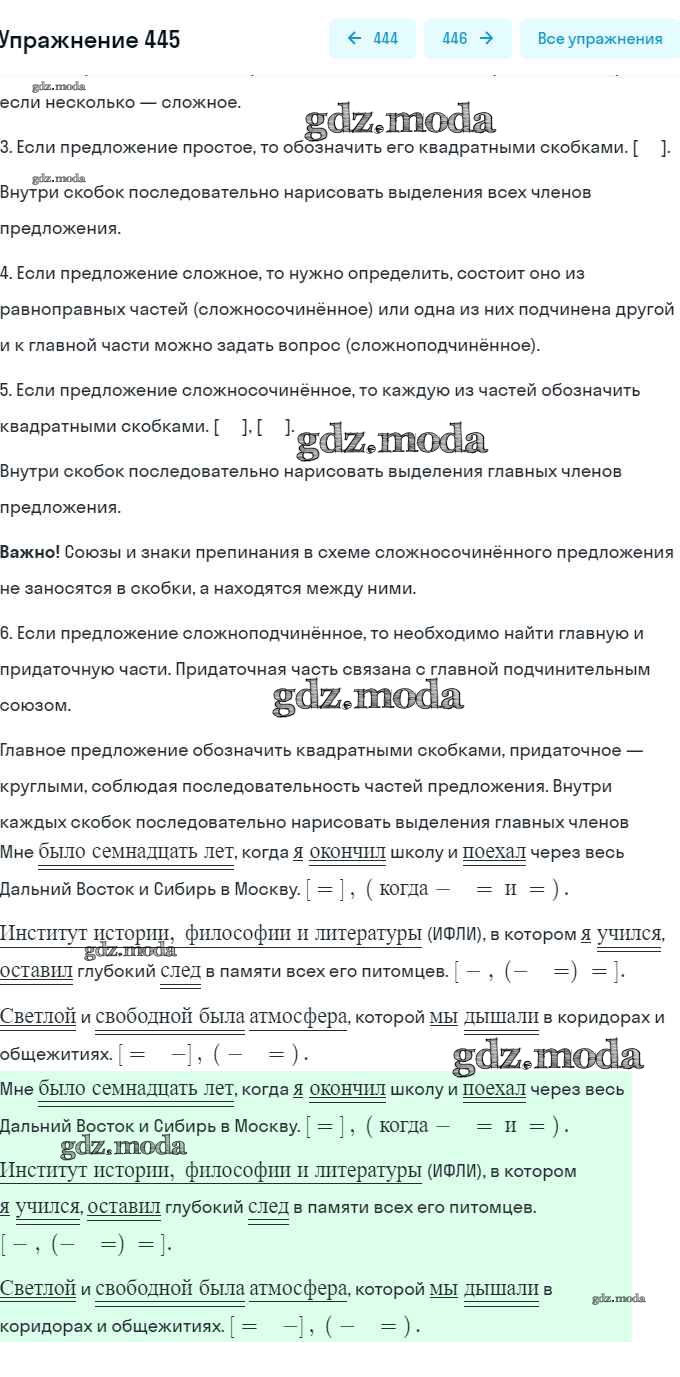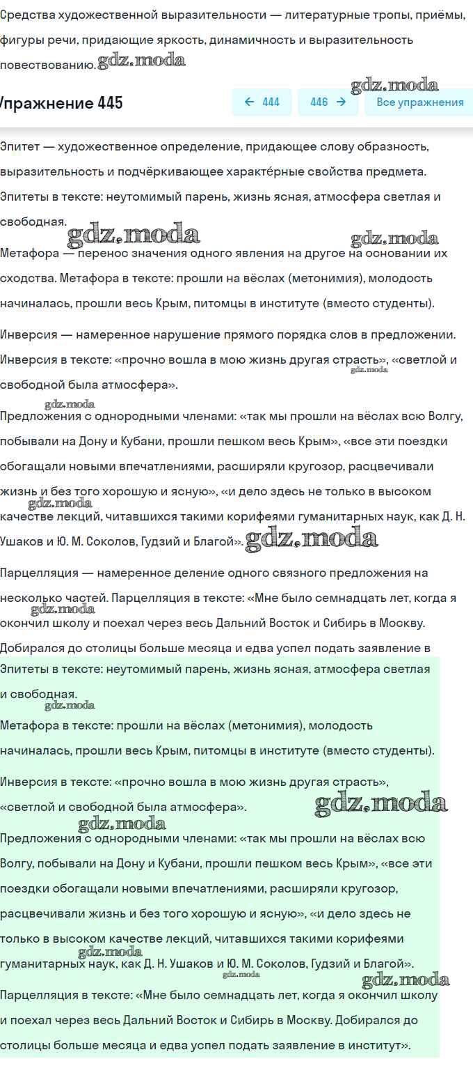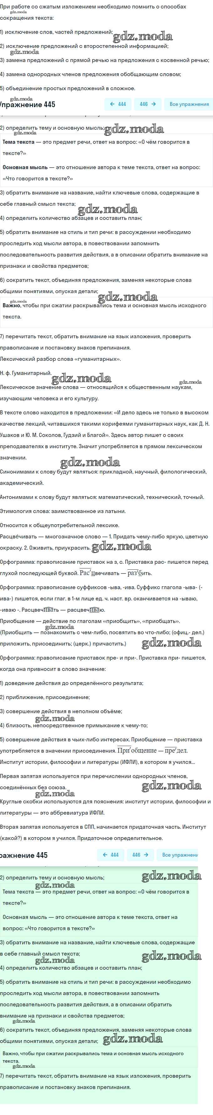 ГДЗ решение к заданию № 445 Русский язык 9 класс практика Пичугов Ю.С. Просвещение, Дрофа 2022, 2012 бесплатно на гдз.мода!