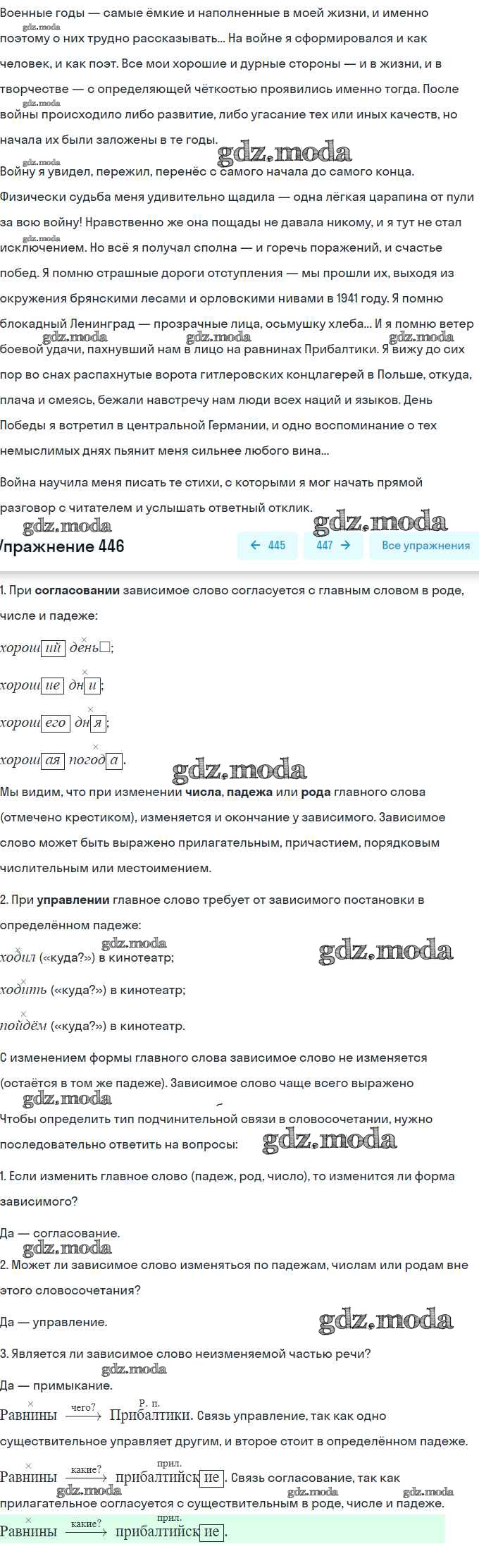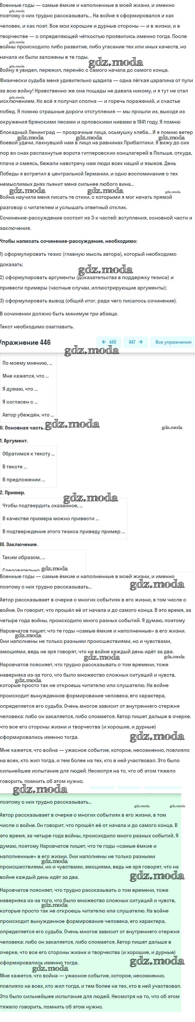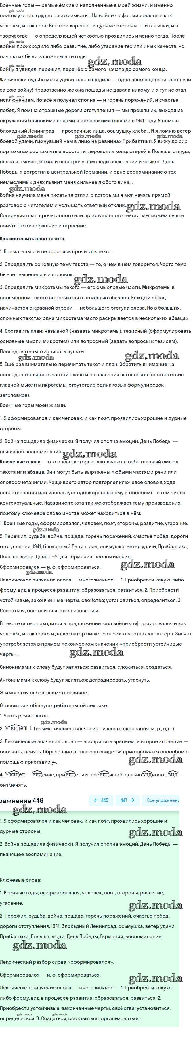 ГДЗ решение к заданию № 446 Русский язык 9 класс практика Пичугов Ю.С. Просвещение, Дрофа 2022, 2012 бесплатно на гдз.мода!