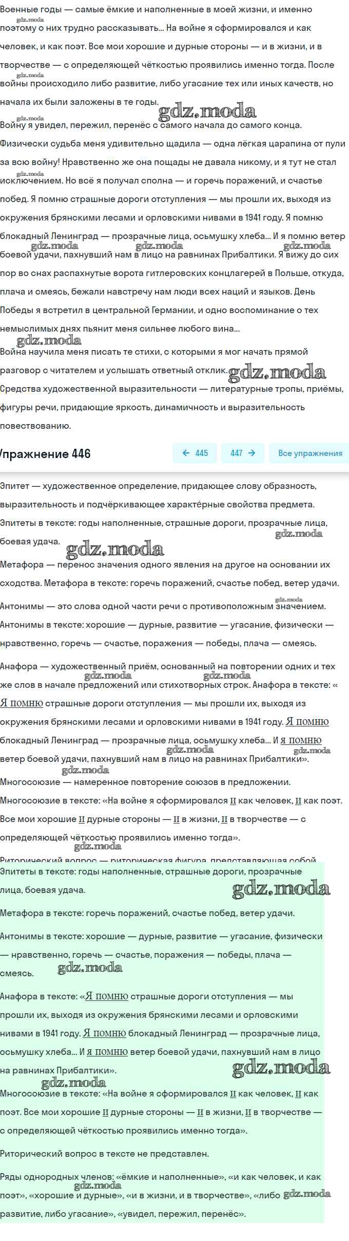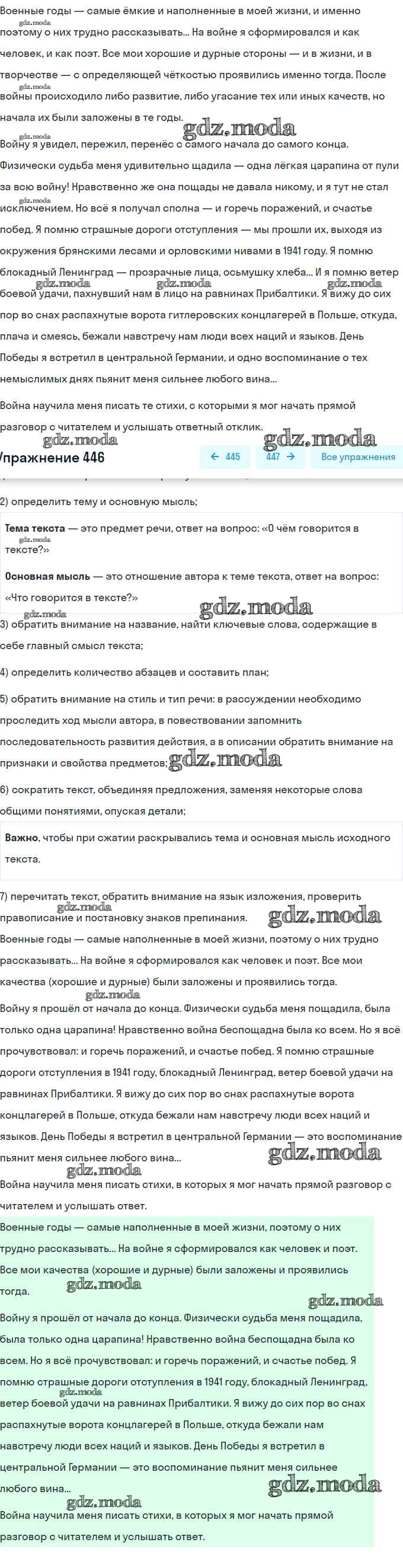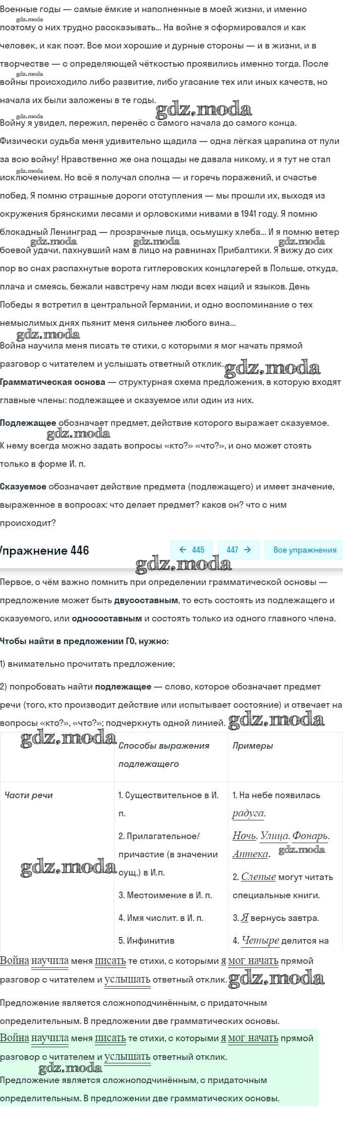 ГДЗ решение к заданию № 446 Русский язык 9 класс практика Пичугов Ю.С. Просвещение, Дрофа 2022, 2012 бесплатно на гдз.мода!