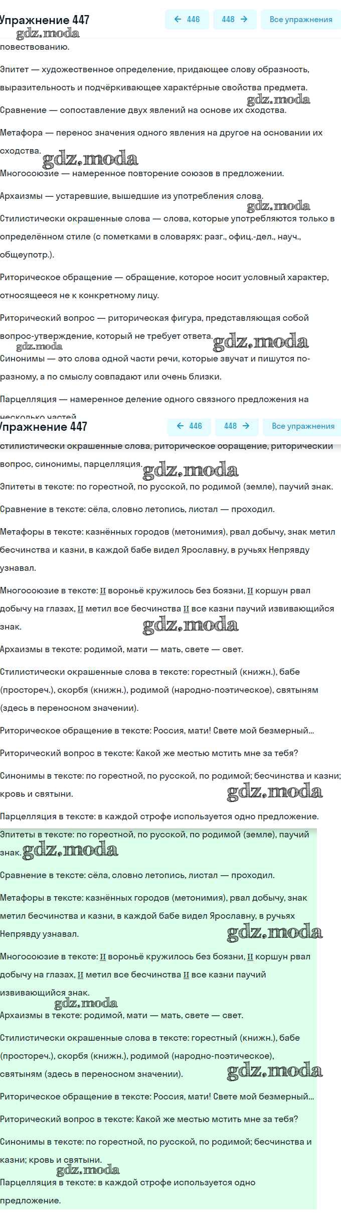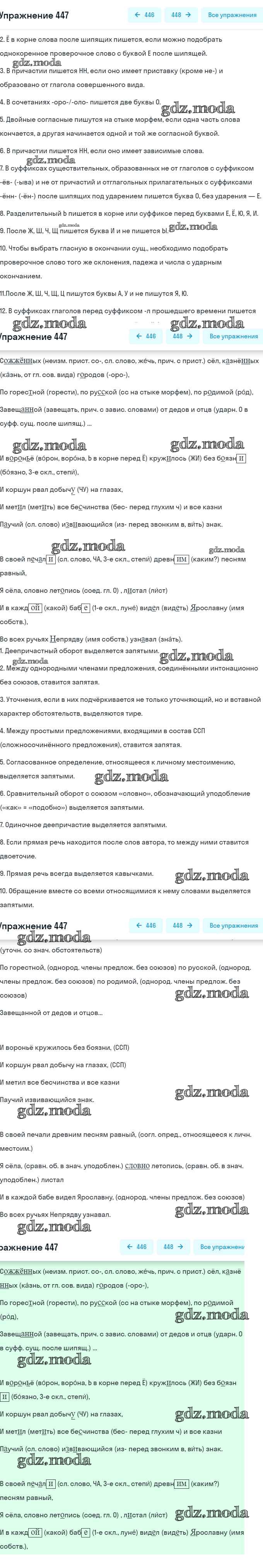 ГДЗ решение к заданию № 447 Русский язык 9 класс практика Пичугов Ю.С. Просвещение, Дрофа 2022, 2012 бесплатно на гдз.мода!