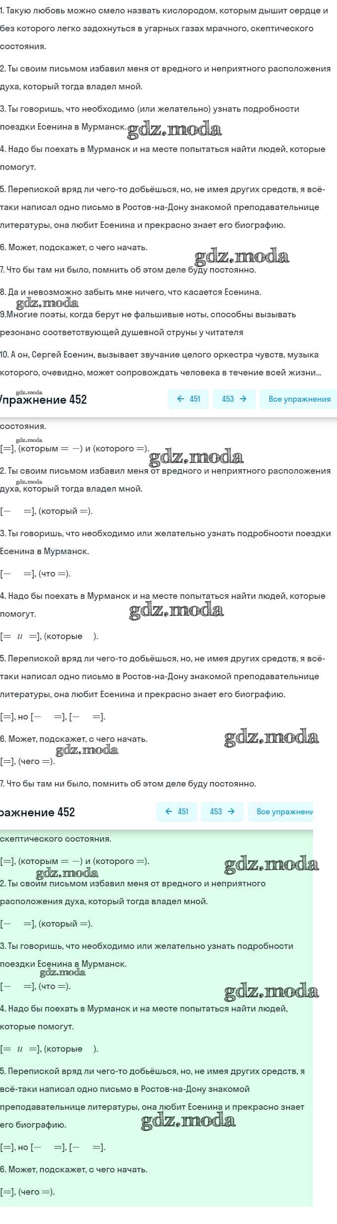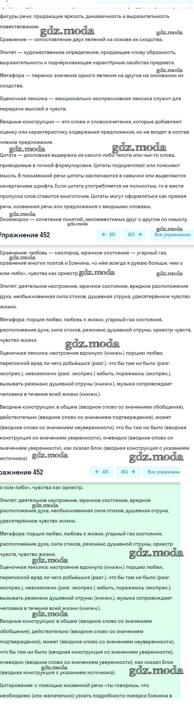 ГДЗ решение к заданию № 452 Русский язык 9 класс практика Пичугов Ю.С. Просвещение, Дрофа 2022, 2012 бесплатно на гдз.мода!