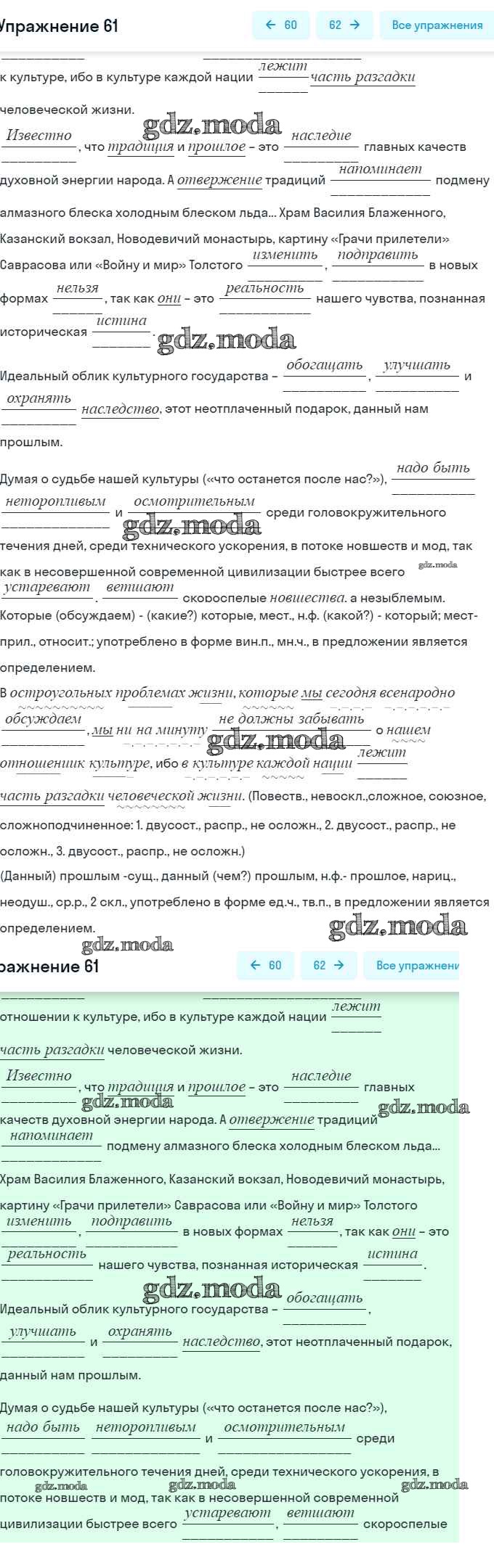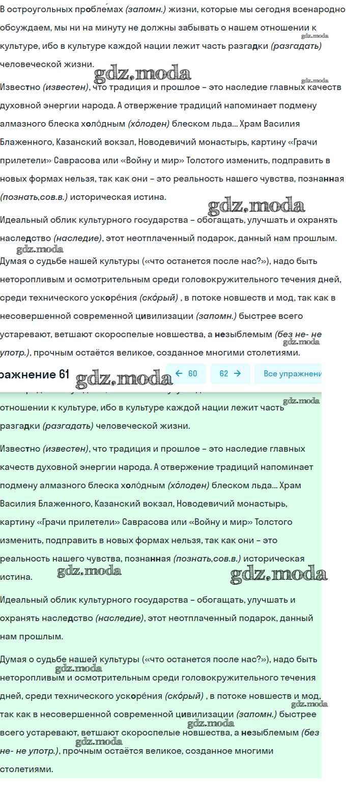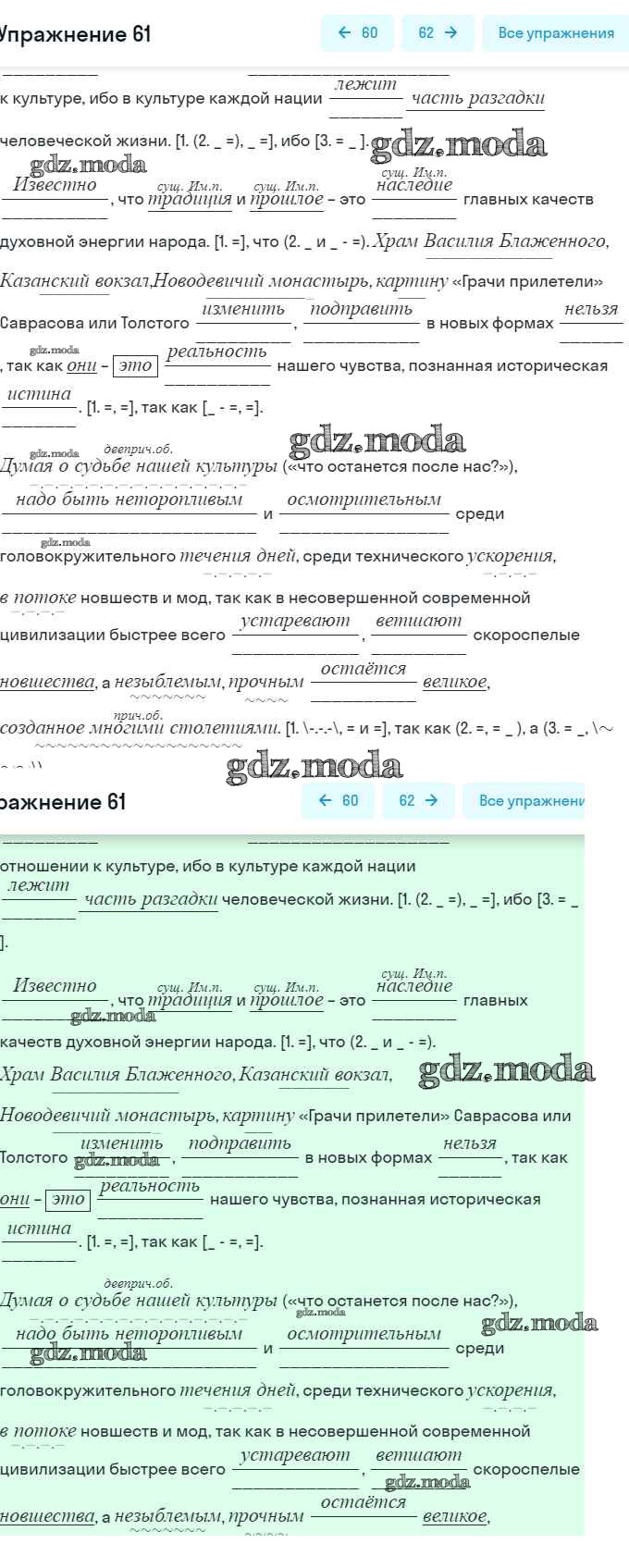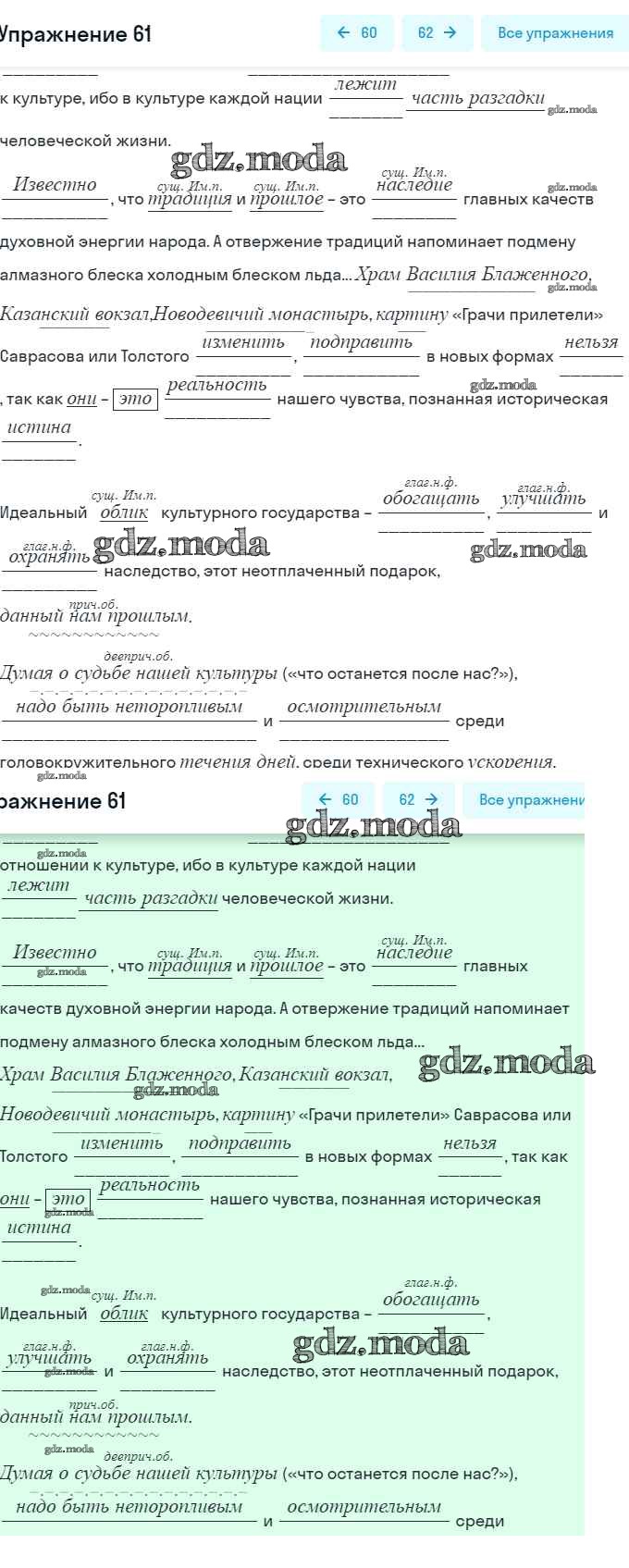 ГДЗ решение к заданию № 61 Русский язык 9 класс практика Пичугов Ю.С. Просвещение, Дрофа 2022, 2012 бесплатно на гдз.мода!