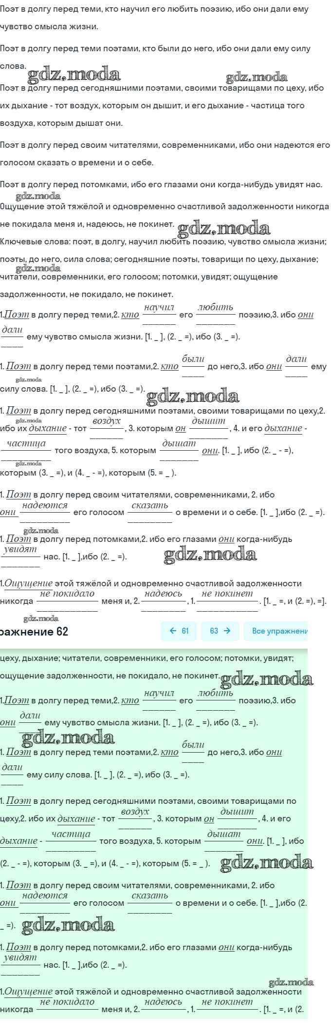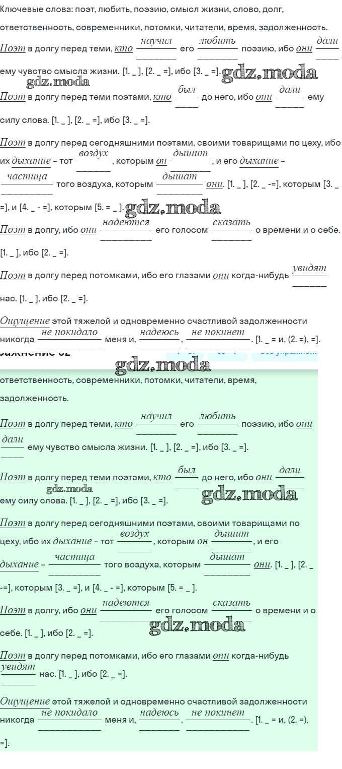 ГДЗ решение к заданию № 62 Русский язык 9 класс практика Пичугов Ю.С. Просвещение, Дрофа 2022, 2012 бесплатно на гдз.мода!