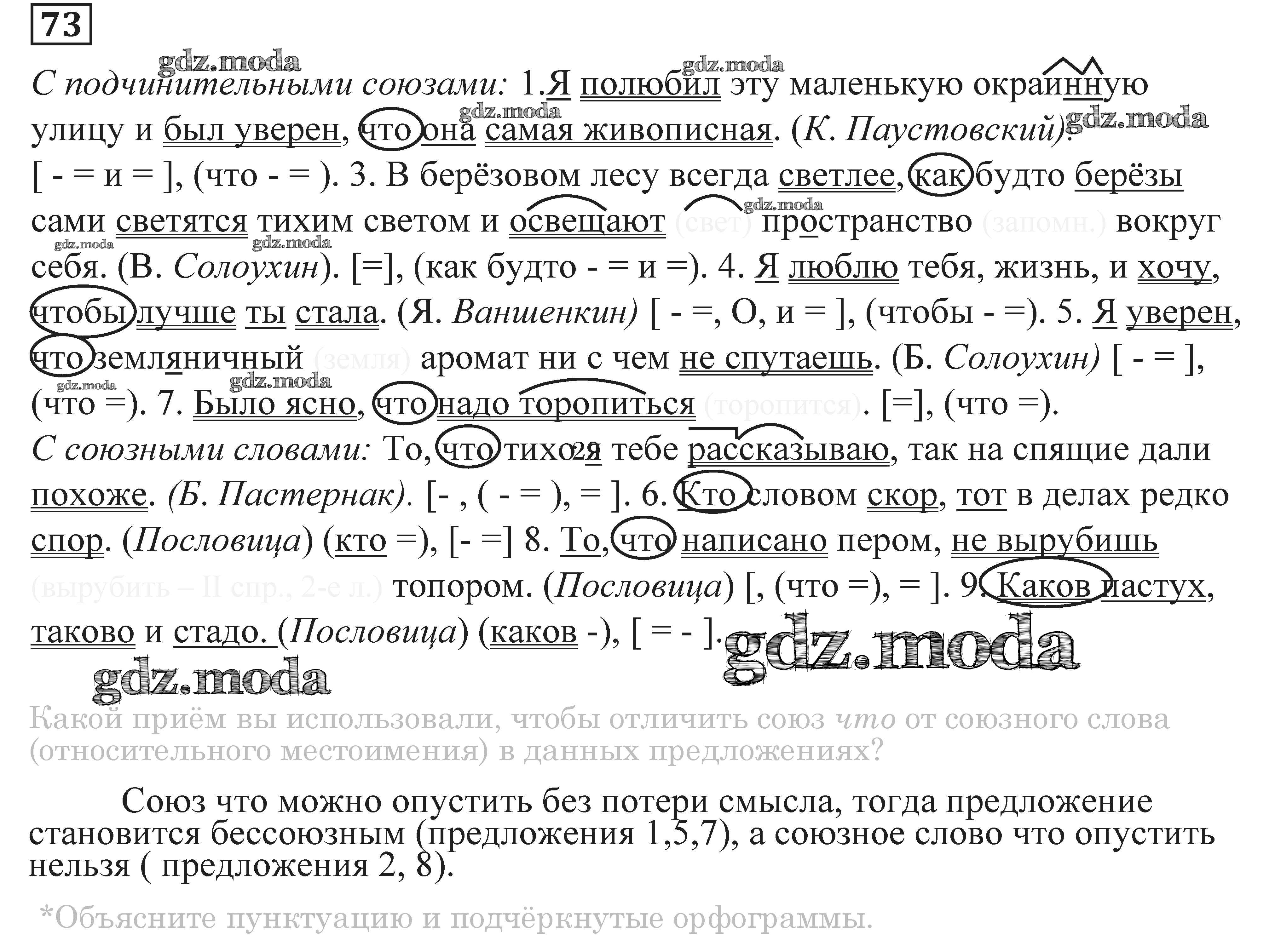 ГДЗ решение к заданию № 73 Русский язык 9 класс практика Пичугов Ю.С. Просвещение, Дрофа 2022, 2012 бесплатно на гдз.мода!