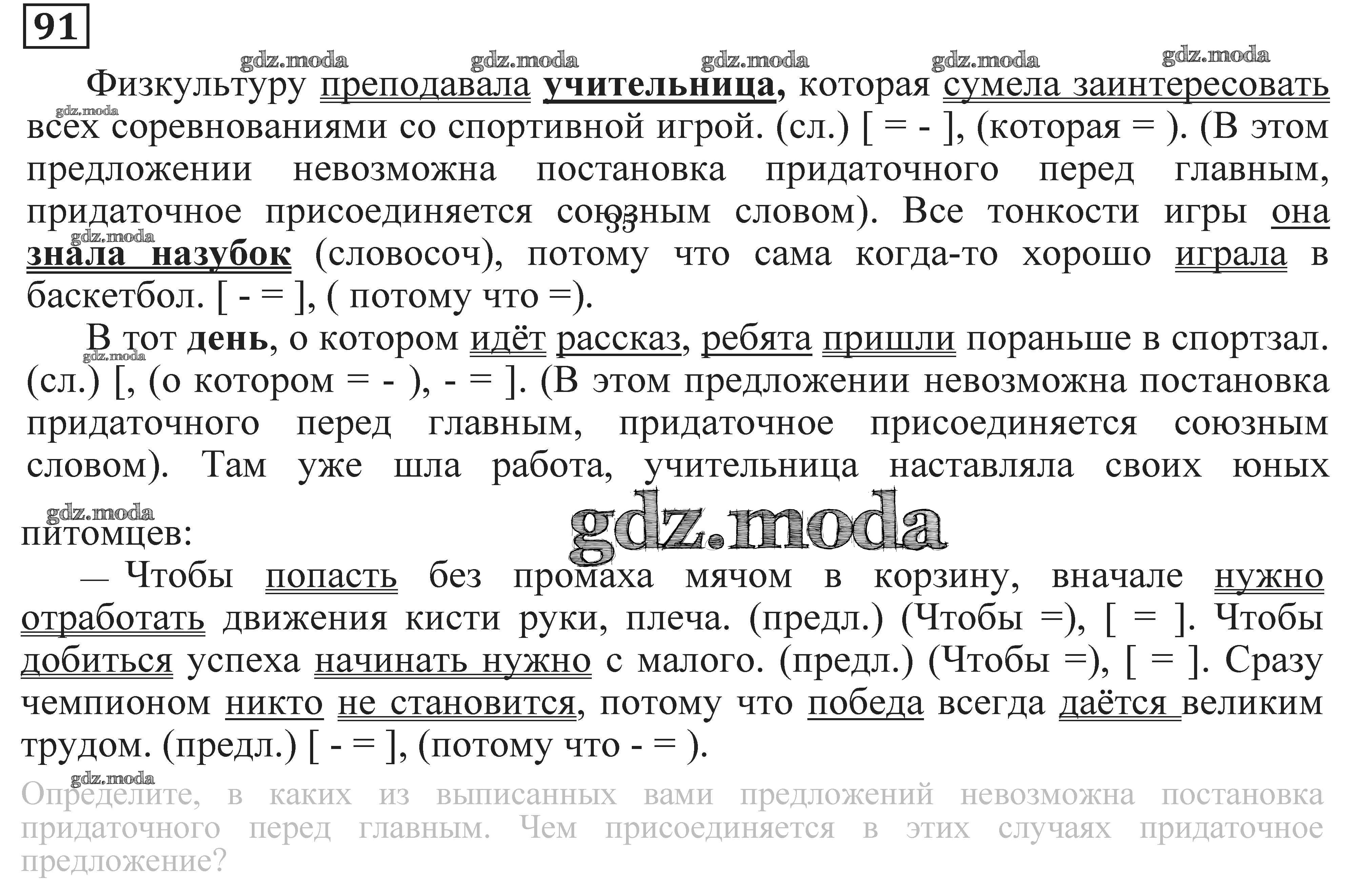 ГДЗ решение к заданию № 91 Русский язык 9 класс практика Пичугов Ю.С. Просвещение, Дрофа 2022, 2012 бесплатно на гдз.мода!