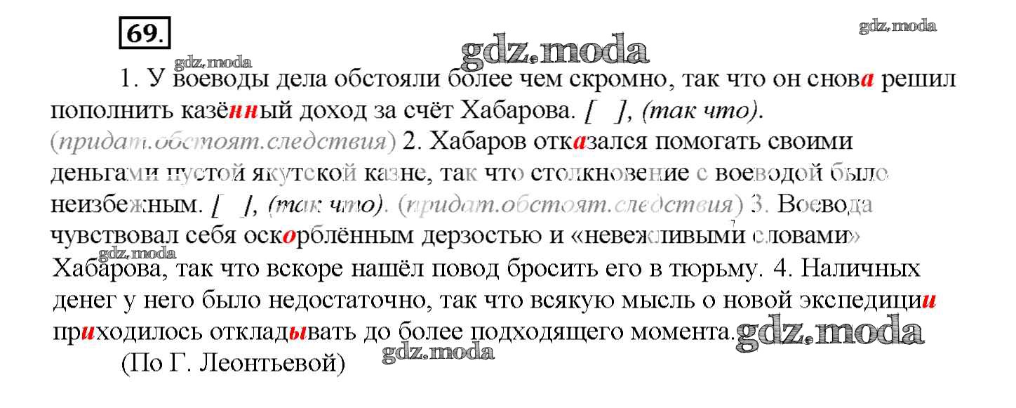 ОТВЕТ на задание № 69 Рабочая тетрадь по Русскому языку 9 класс Богданова