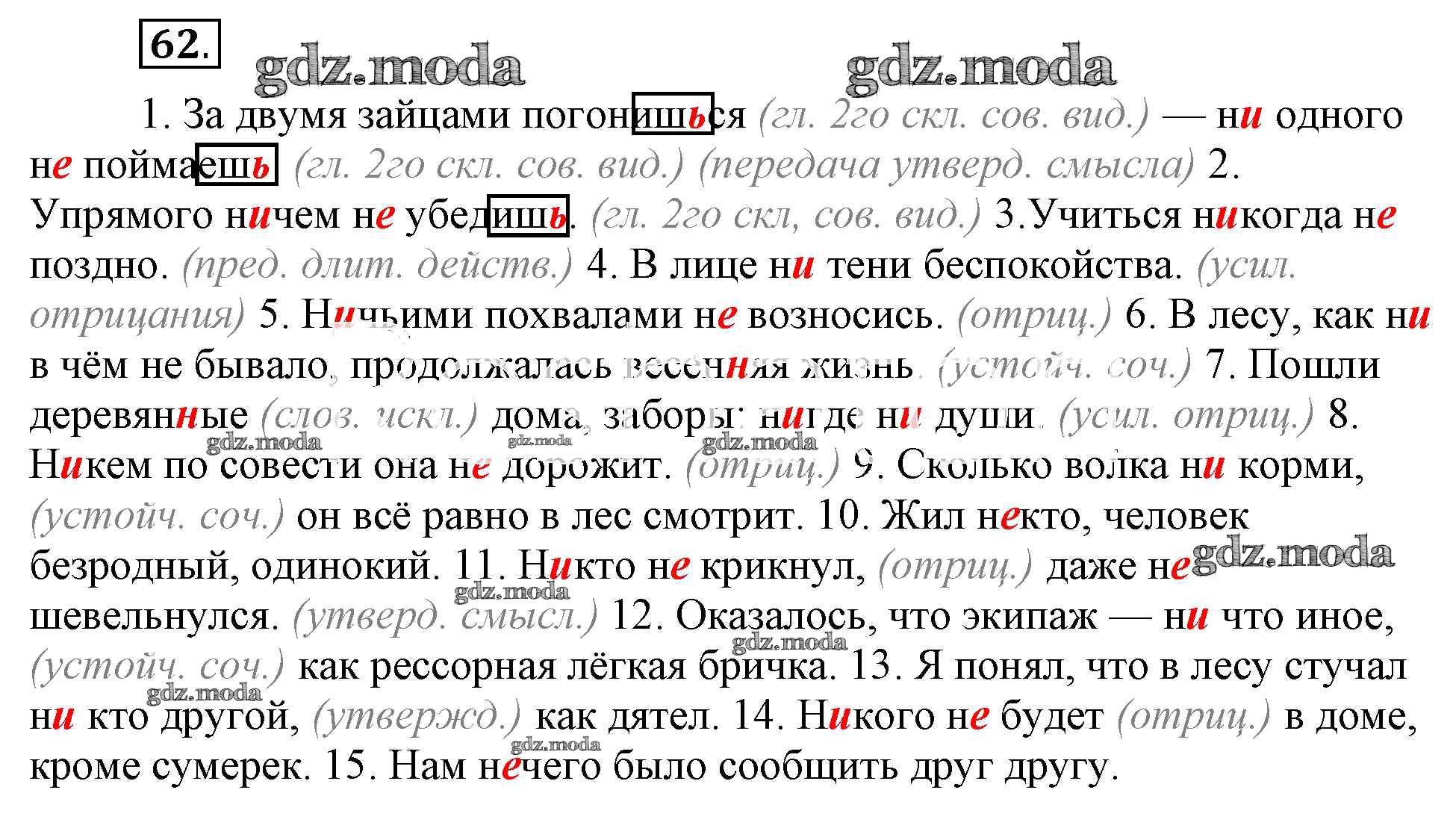 ОТВЕТ на задание № 62 Рабочая тетрадь по Русскому языку 9 класс Ефремова УМК