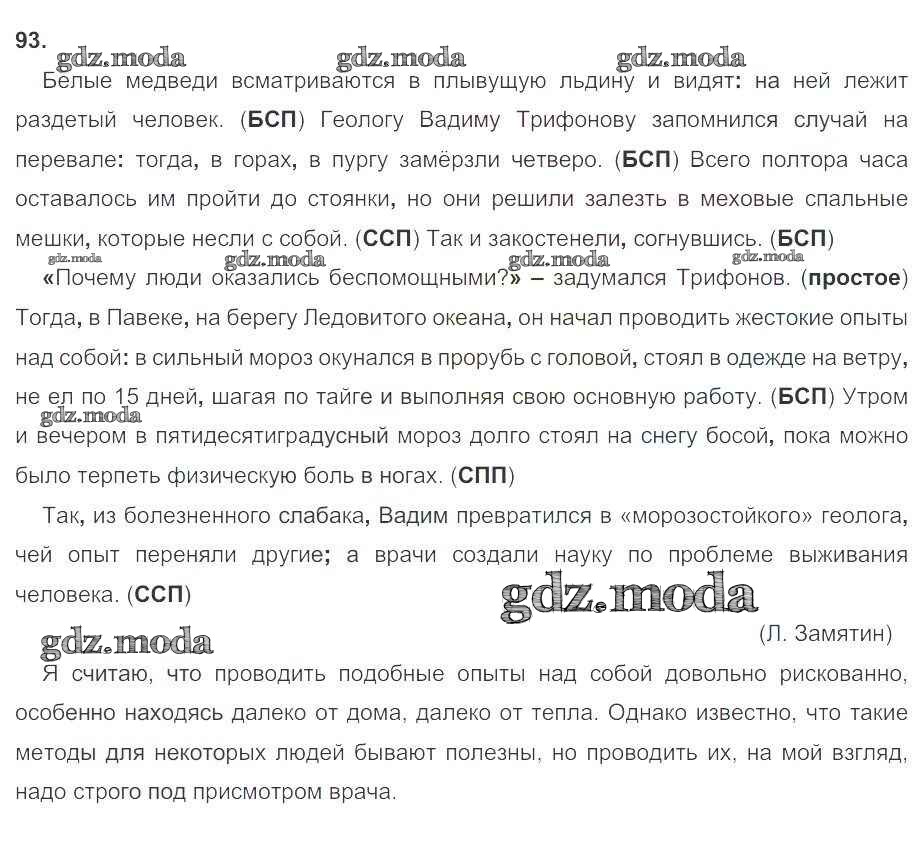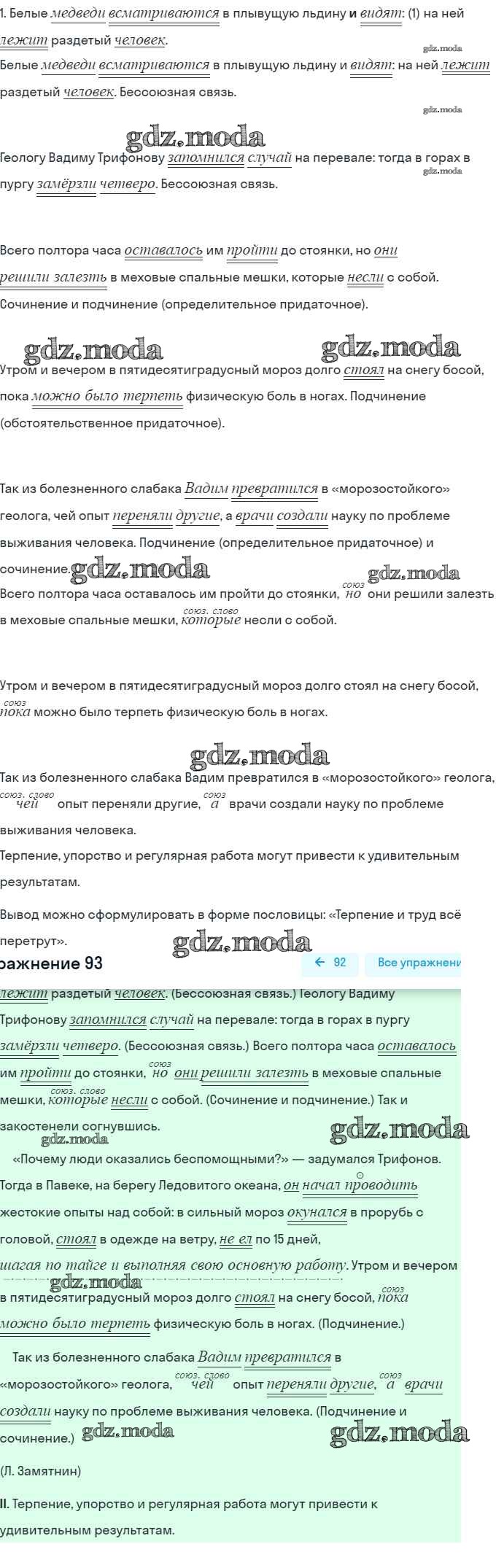 ОТВЕТ на задание № 93 Рабочая тетрадь по Русскому языку 9 класс Ефремова УМК
