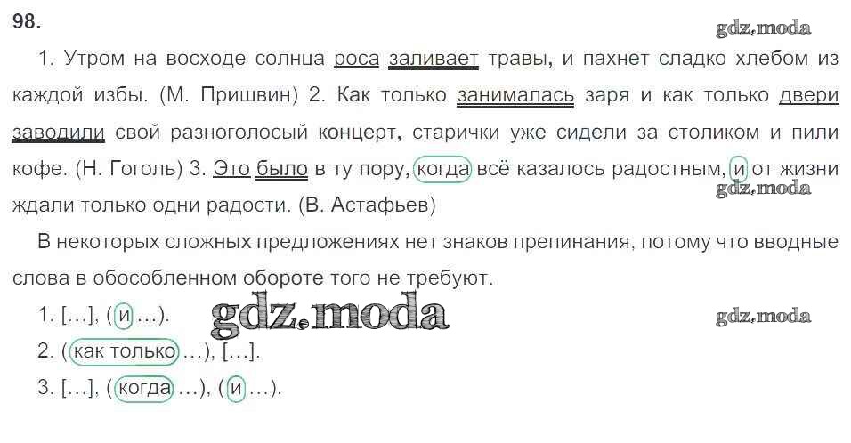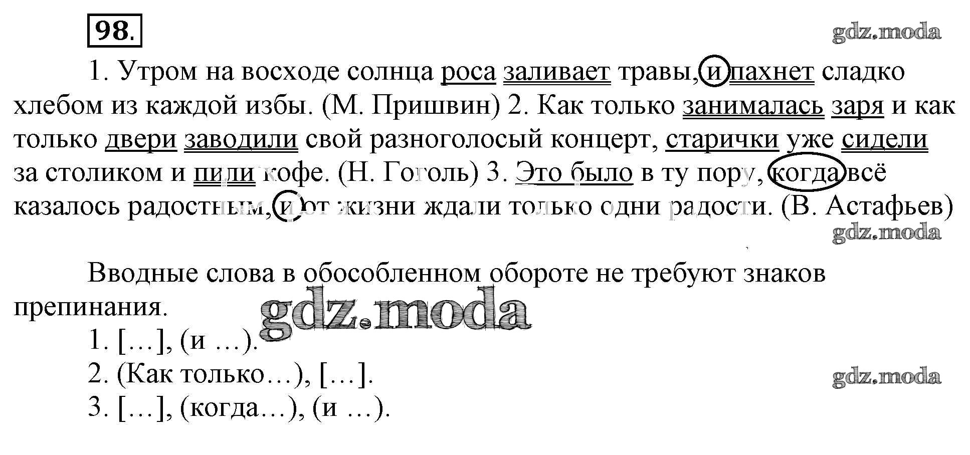 ОТВЕТ на задание № 98 Рабочая тетрадь по Русскому языку 9 класс Ефремова УМК