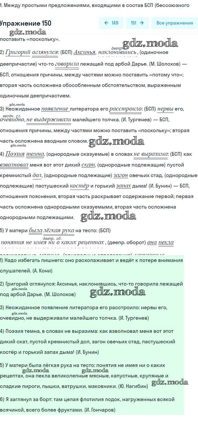 ОТВЕТ на задание № 150 Рабочая тетрадь по Русскому языку 9 класс Литвинова Вертикаль