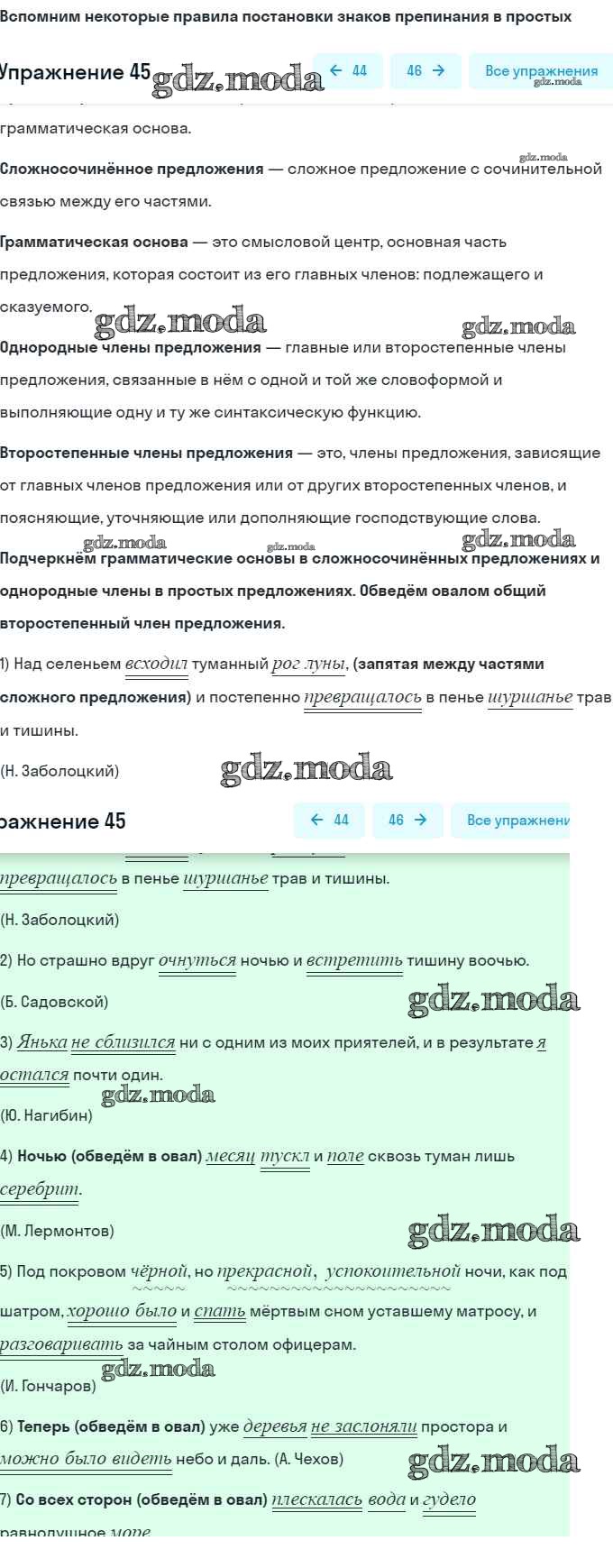 ГДЗ решение к заданию № 45 Русский язык 9 класс рабочая тетрадь Литвинова М.М. Дрофа 2016 ФГОС бесплатно на гдз.мода!