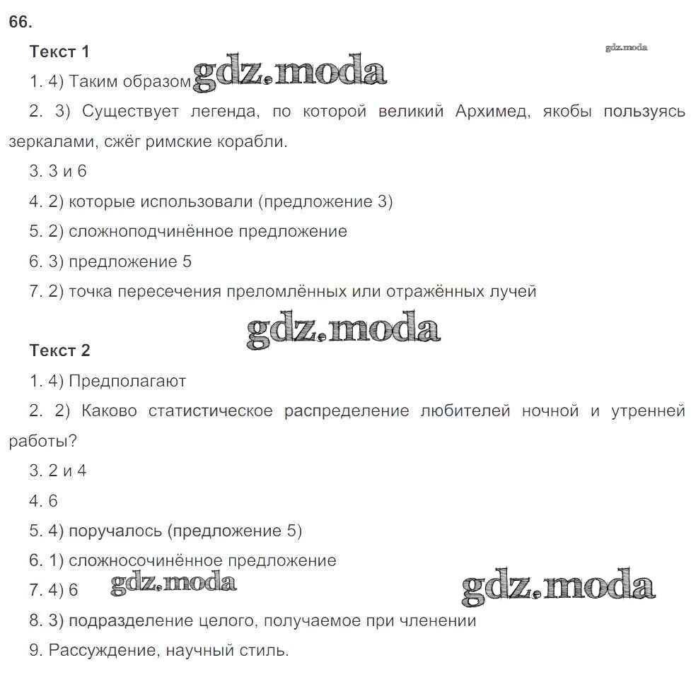 ГДЗ решение к заданию № 66 Русский язык 9 класс рабочая тетрадь Литвинова М.М. Дрофа 2016 ФГОС бесплатно на гдз.мода!