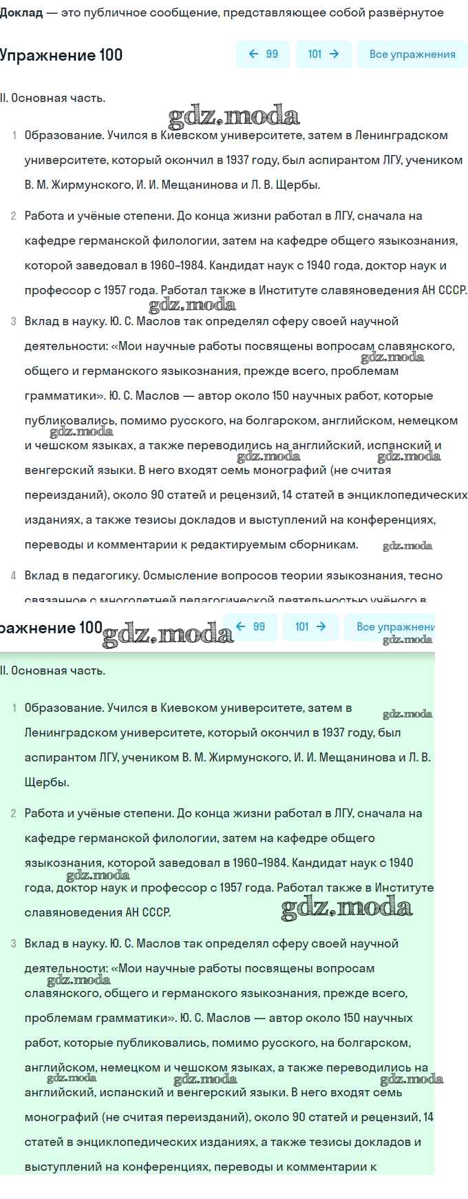 ОТВЕТ на задание № 100 Учебник по Русскому языку 9 класс Разумовская Вертикаль