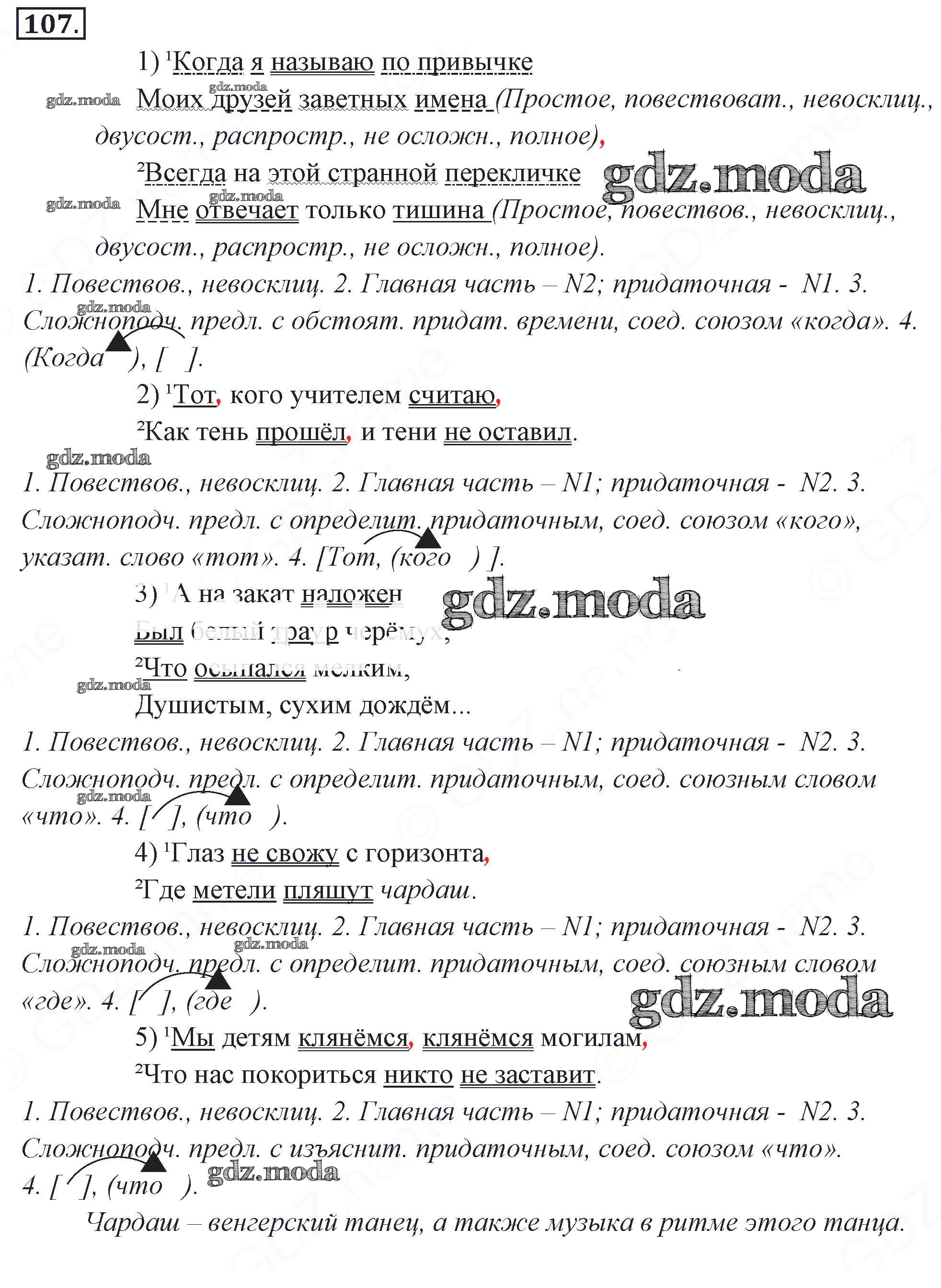 ОТВЕТ на задание № 107 Учебник по Русскому языку 9 класс Разумовская Вертикаль