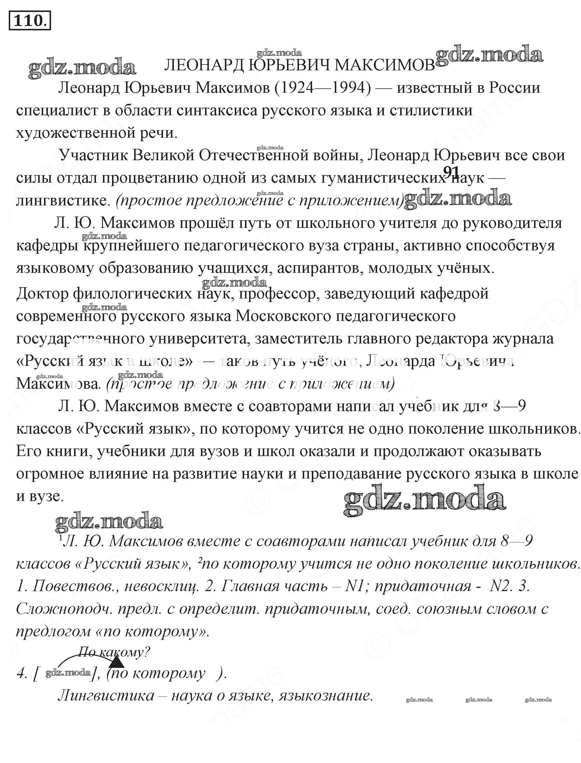ОТВЕТ на задание № 110 Учебник по Русскому языку 9 класс Разумовская Вертикаль