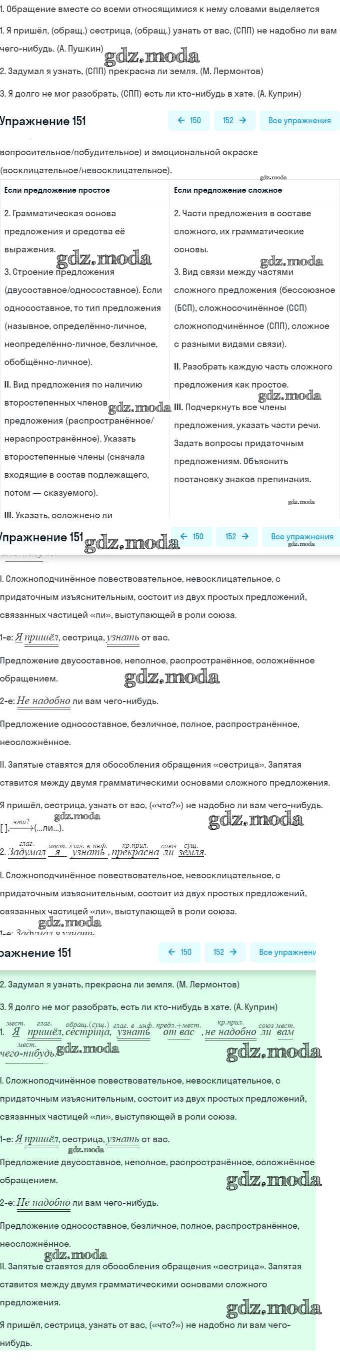 ОТВЕТ на задание № 151 Учебник по Русскому языку 9 класс Разумовская Вертикаль